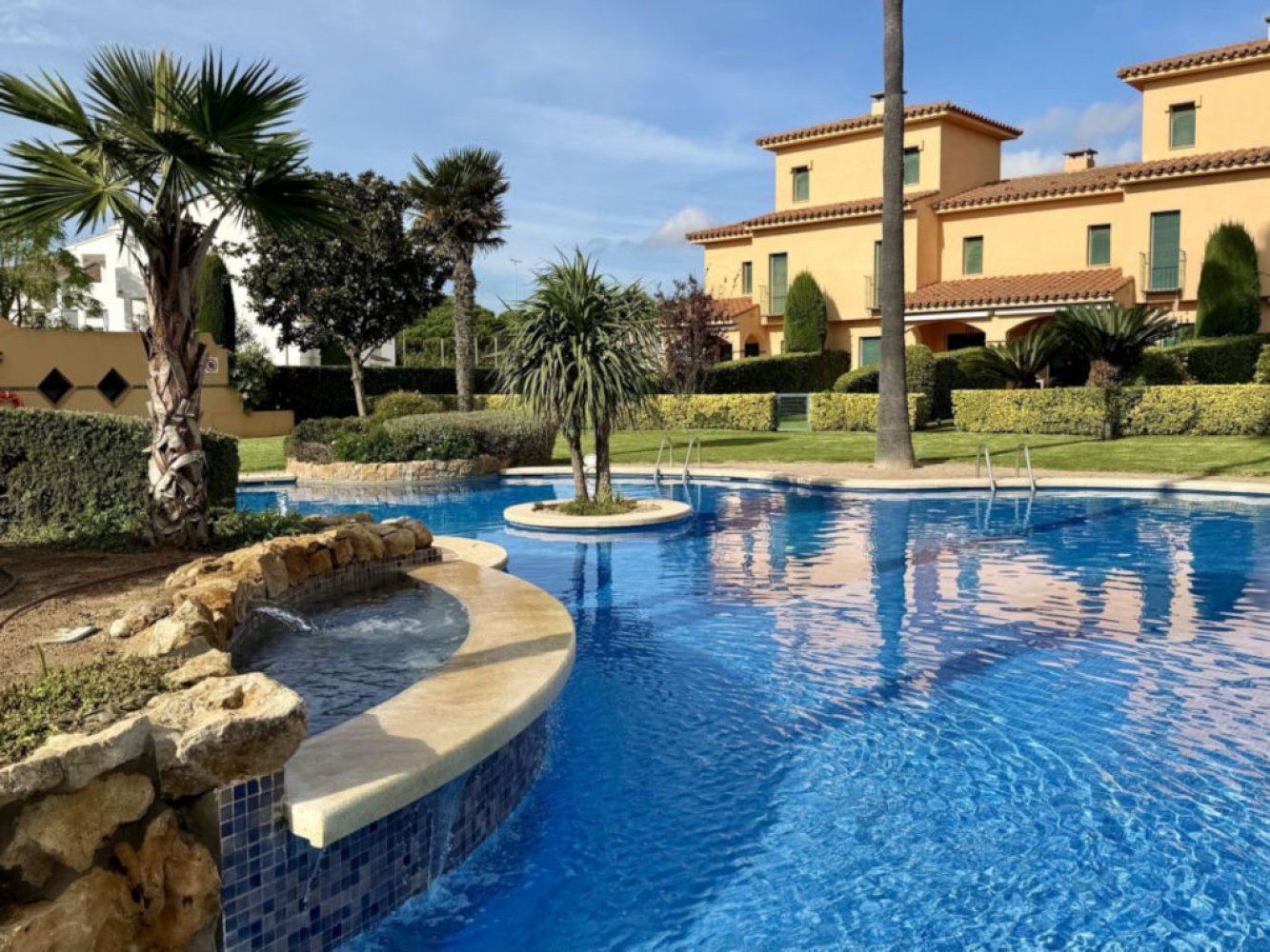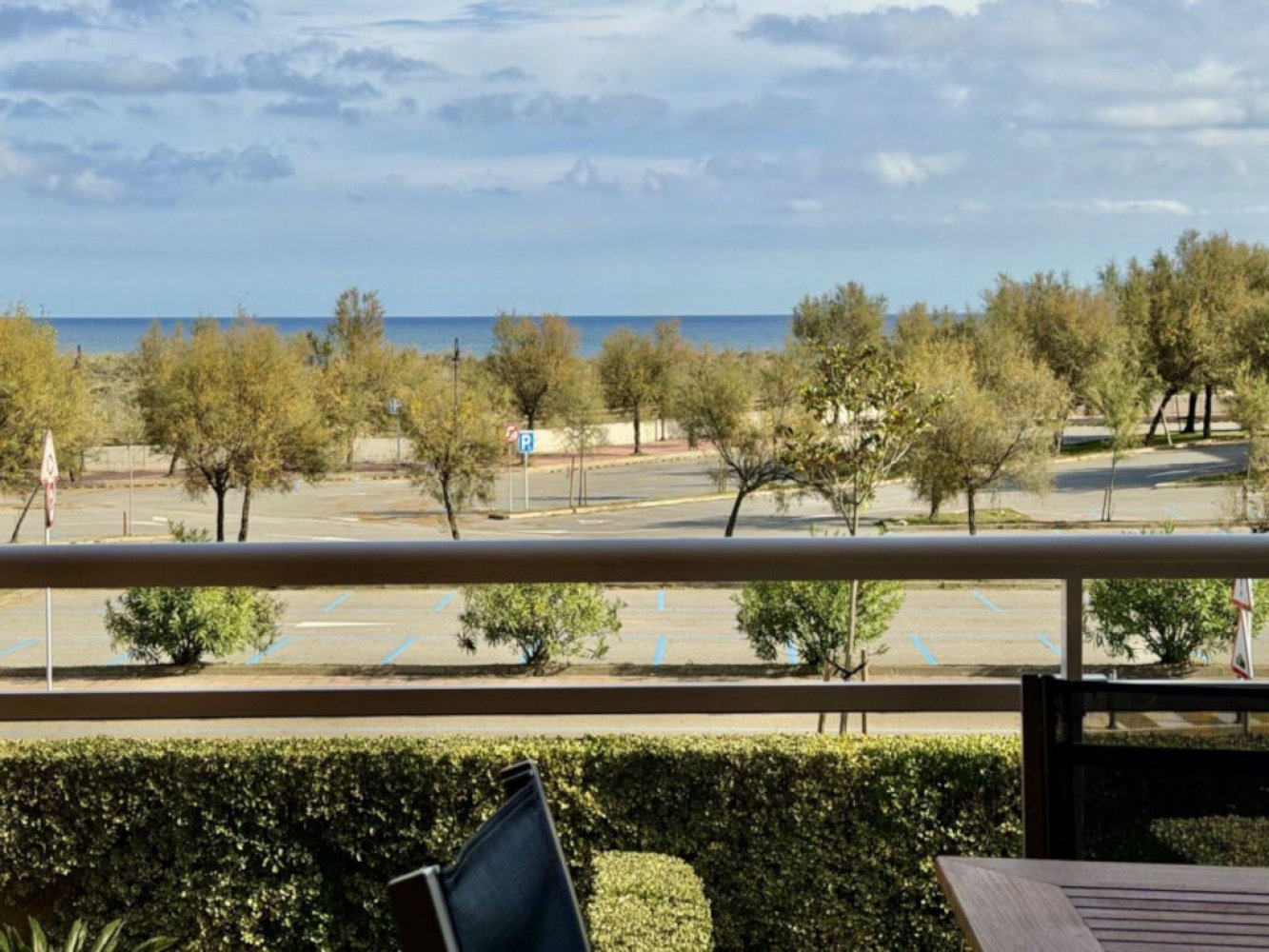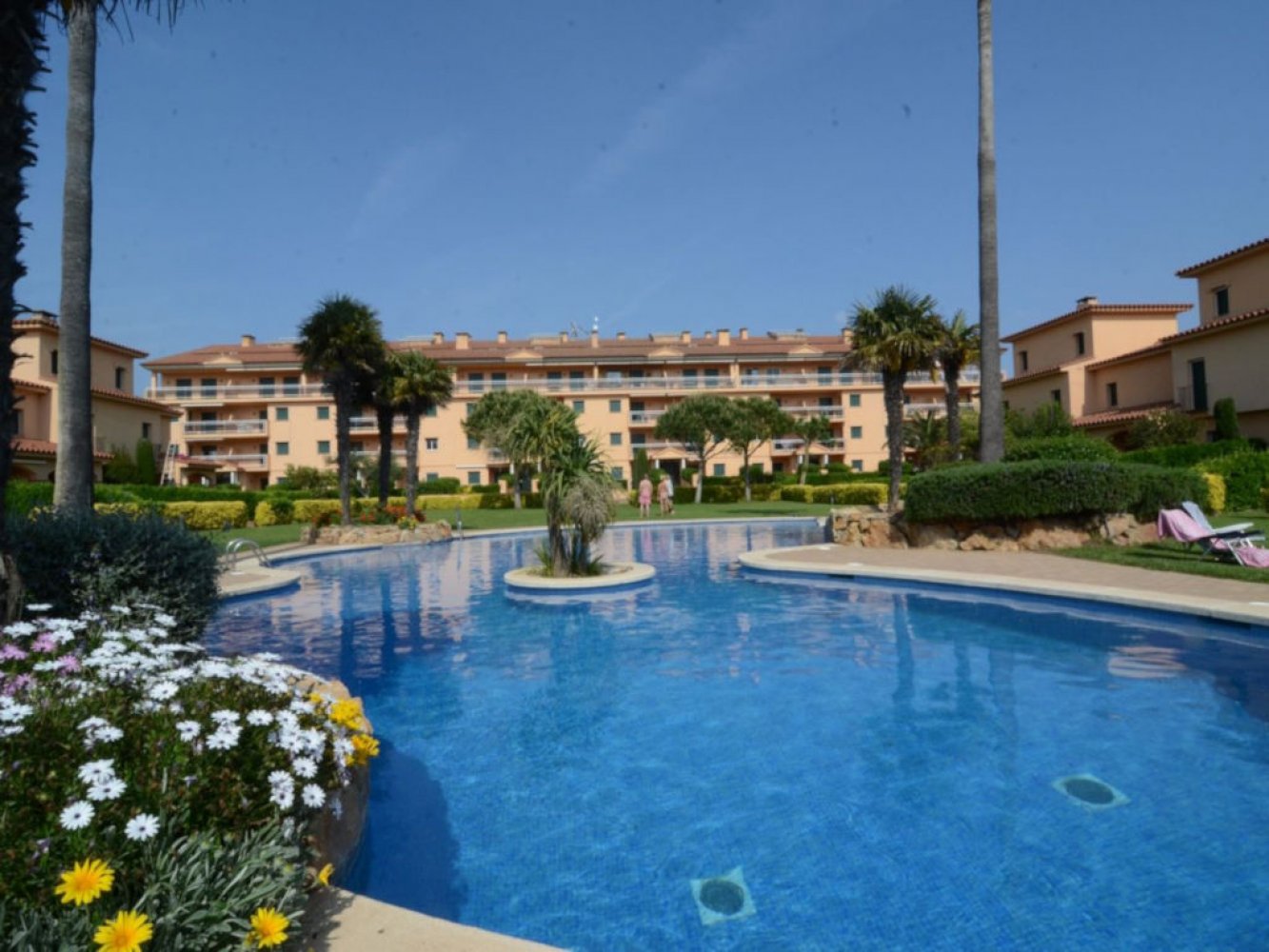 Moderne Ferienwohnung in Spanien in erster Strandreihe mit atemberaubendem Meerblick. Die Wohnung liegt am Playa de Pals an der Costa Brava, eingebettet in eine gepflegte, mediterrane Ferienanlage mit einer großzügigen Schwimmbadlandschaft und Kinderbecken.