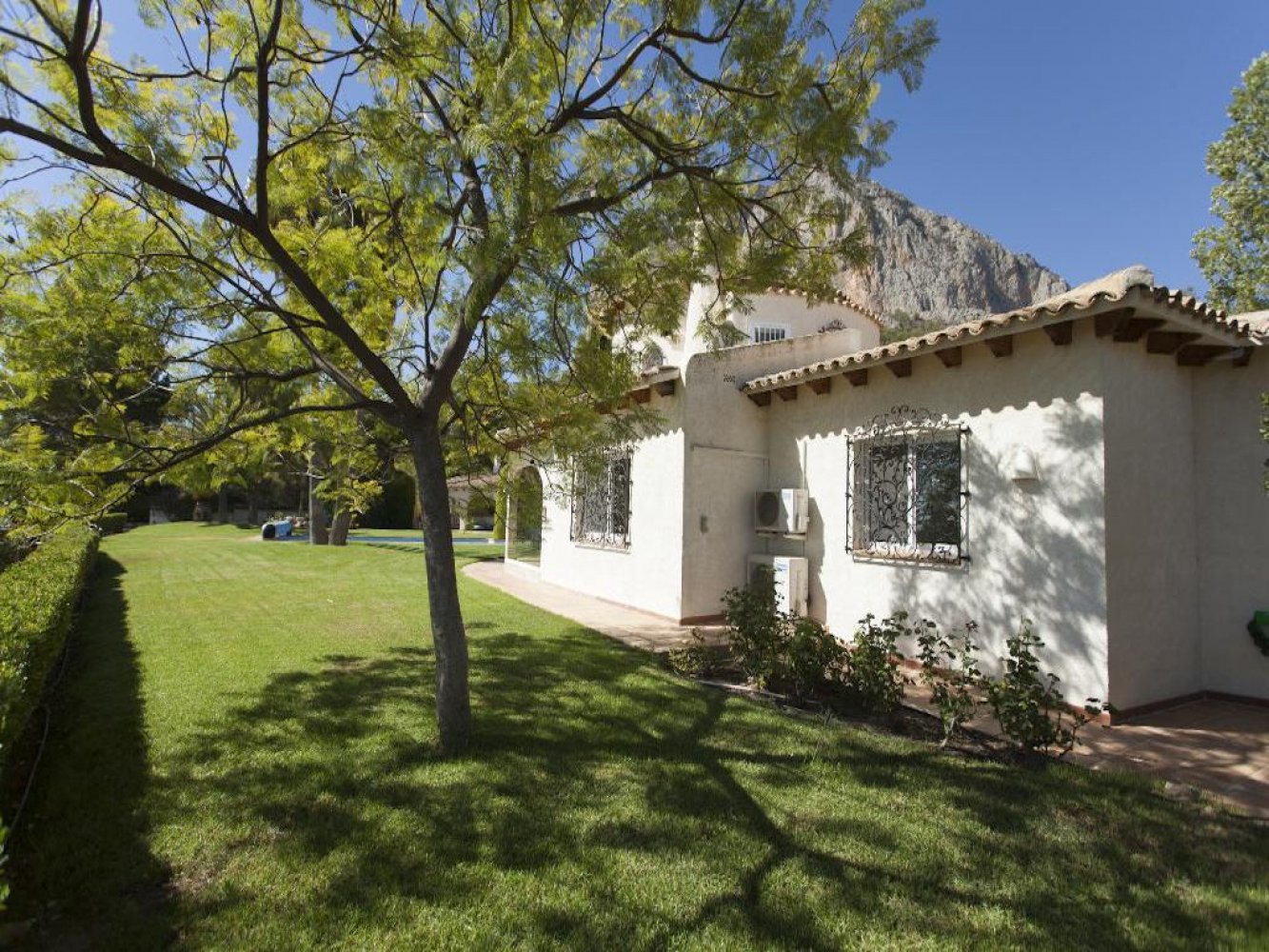 Exklusive Ferienvilla mit privatem Swimmingpool an der Costa Blanca, nahe Altea. Die Villa befindet sich in der malerischen Region Polop, eingebettet in eine idyllische, ländliche Umgebung, und bietet einen atemberaubenden Panoramablick auf die beeindruckende Berglandschaft der Costa Blanca sowie auf das Mittelmeer.