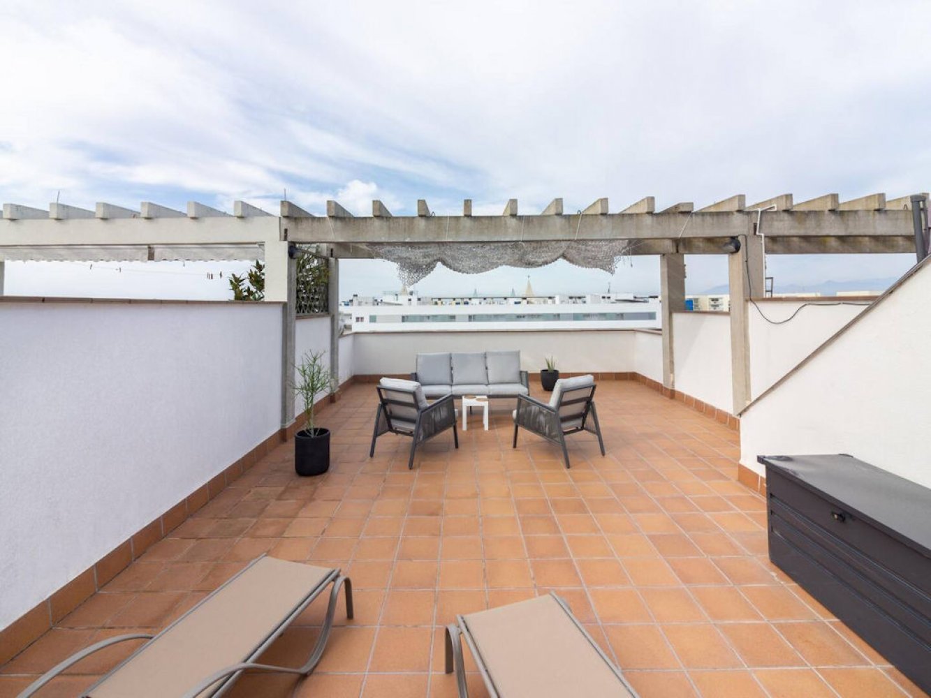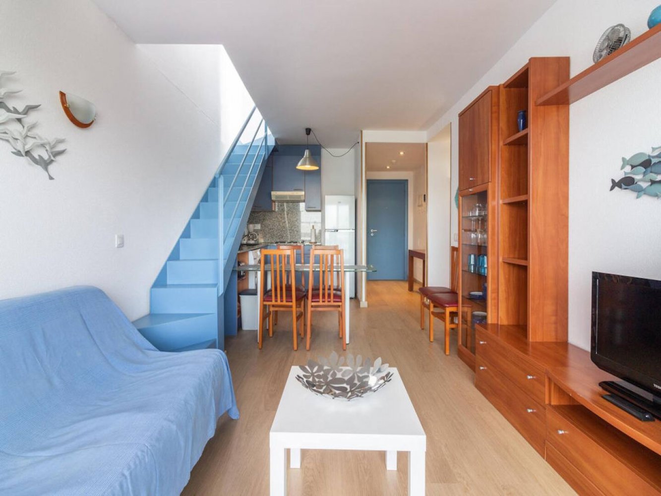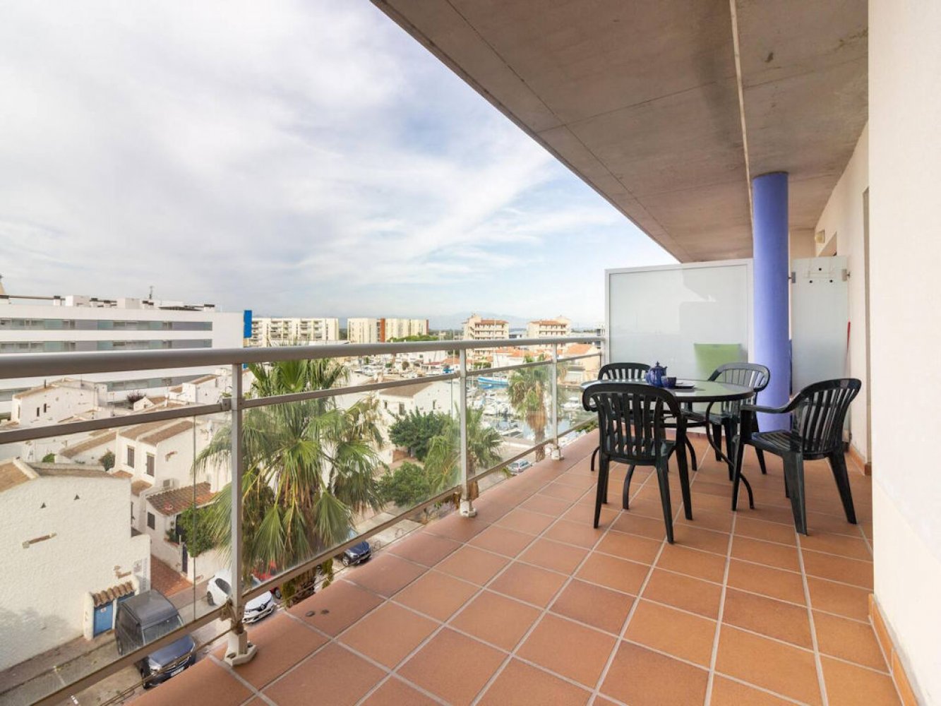 Das Appartement befindet sich in der 4. Etage und verfügt über ein helles Wohn- und Esszimmer mit TV, eine moderne, voll ausgestattete Küche mit Waschmaschine, zwei Doppelschlafzimmer und ein modernes Badezimmer. Vom Wohn- und Essbereich haben Sie Zugang zu einem schönen Balkon mit beeindruckendem Panoramablick auf die Kanäle von Santa Margarita. Das Highlight der Wohnung ist die große Dachterrasse, die über eine Innentreppe erreichbar ist und ebenfalls einen atemberaubenden Ausblick auf den Ferienort bietet.
