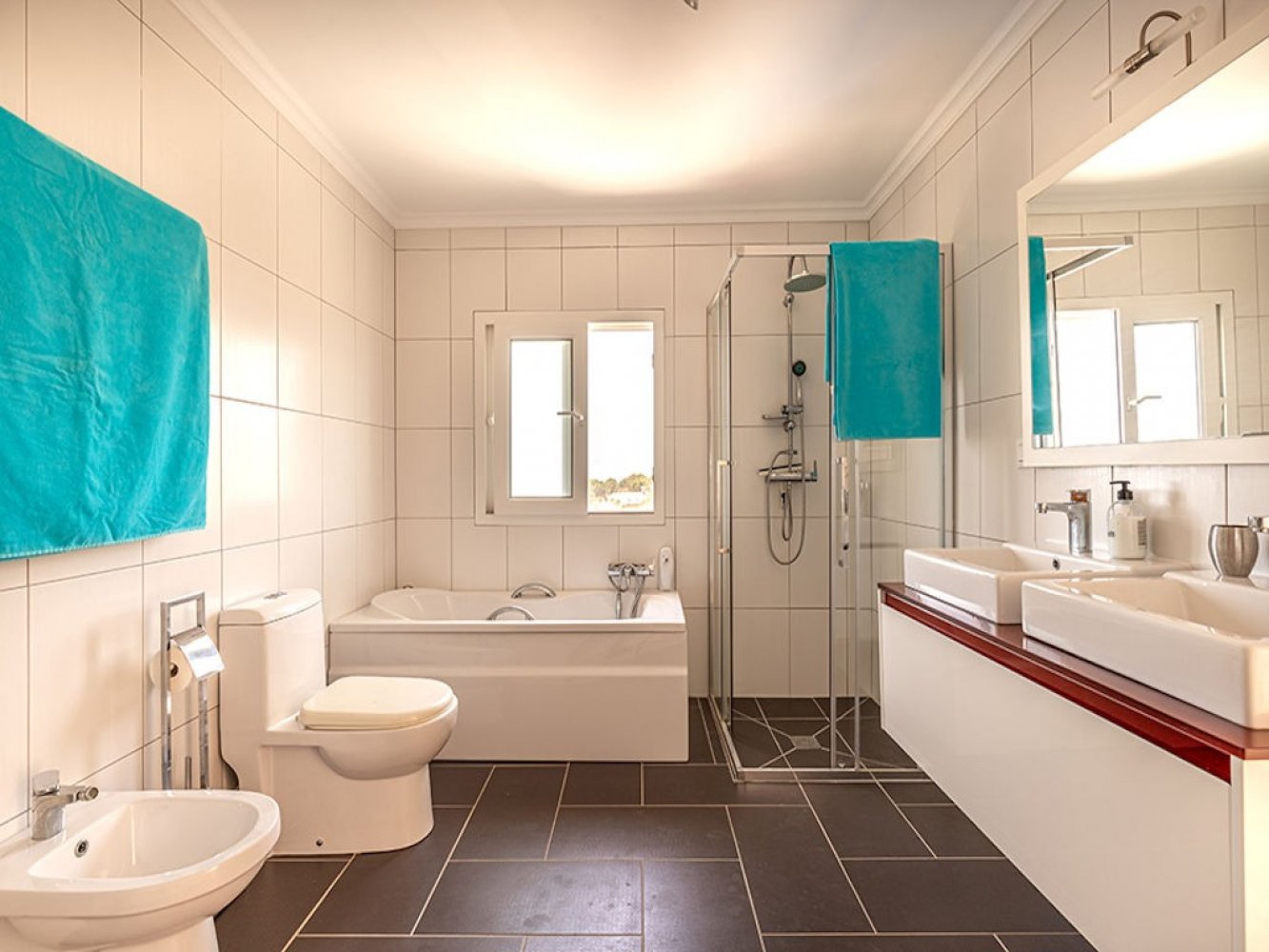 Die moderne Villa erstreckt sich über zwei Etagen. Unten finden Sie ein Wohn-/Esszimmer mit Kamin und Sat-TV, eine moderne Küche mit Geschirrspüler, einen Abstellraum mit Waschmaschine und Wäschetrockner, 1 Doppelschlafzimmer, 1 Bad sowie ein Gäste-WC. Vom Wohn-/Essbereich haben Sie Zugang zu einer schönen überdachten Terrasse mit elektrischer Pergola und zur großzügigen Poolterrasse mit atemberaubendem Blick auf das Mittelmeer. Oben befinden sich drei Doppelschlafzimmer, drei Bäder und Ausgang auf einen schönen Balkon mit Panoramablick auf das Mittelmeer.