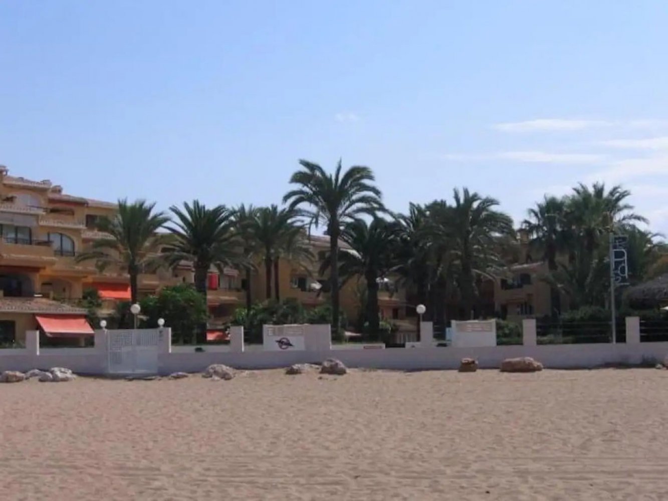 Moderne, strandnahe Ferienwohnung an der Costa Blanca bei Dénia mit Panoramablick auf das Mittelmeer. Das Apartment liegt nur 100 Meter vom Sandstrand entfernt und hat Anschluss an eine gepflegte Ferienanlage mit tropischem Gemeinschaftsgarten sowie einer großzügigen Schwimmbadlandschaft mit Kinderbecken.