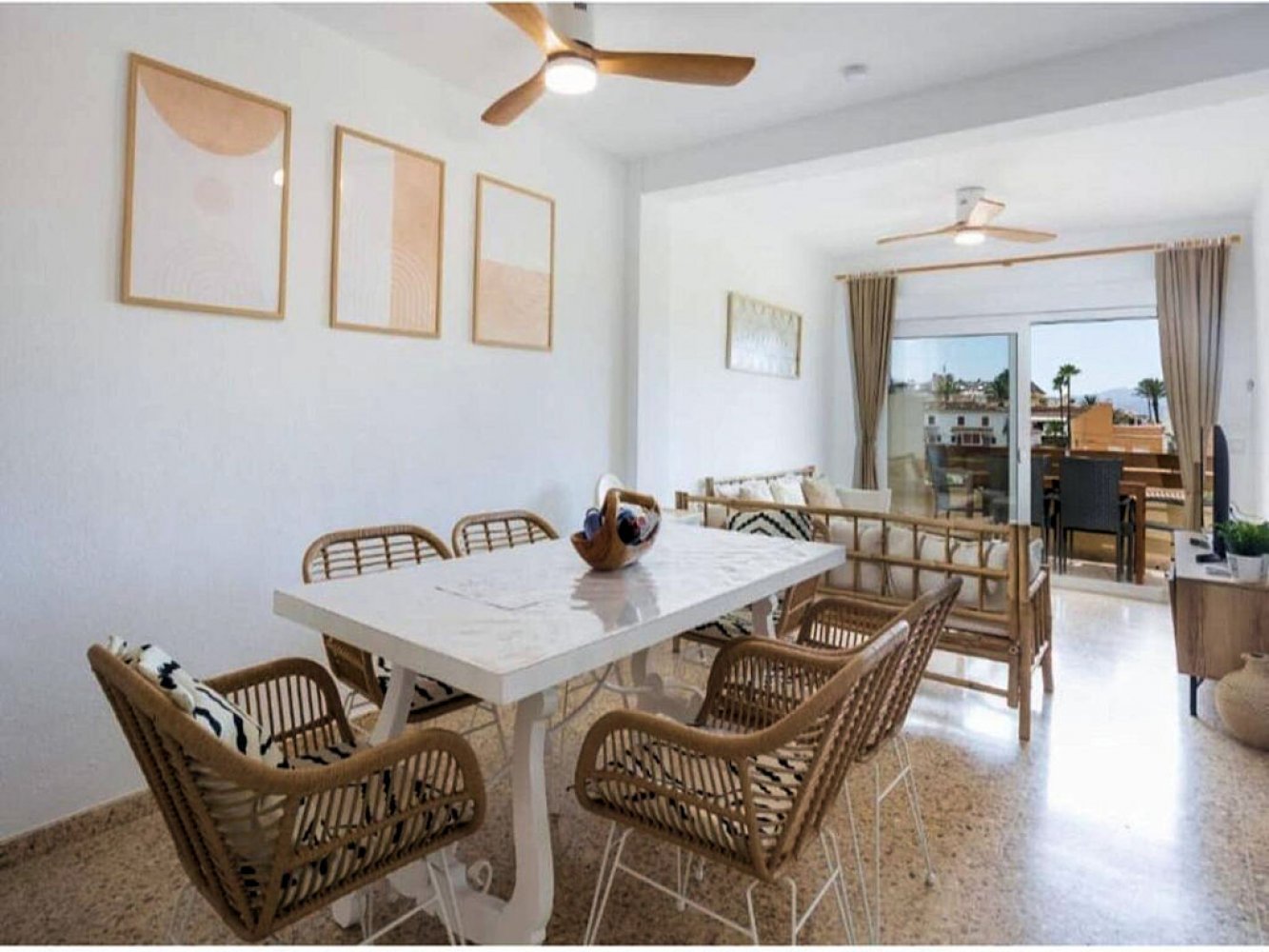 Die Wohnung bietet ein helles Wohn- und Esszimmer mit TV, eine moderne, komplett ausgestattete Küche mit Waschmaschine, drei Doppelschlafzimmer und zwei moderne Badezimmer. Vom Wohnbereich gelangen Sie direkt auf den Balkon. Ein Parkplatz ist vorhanden.