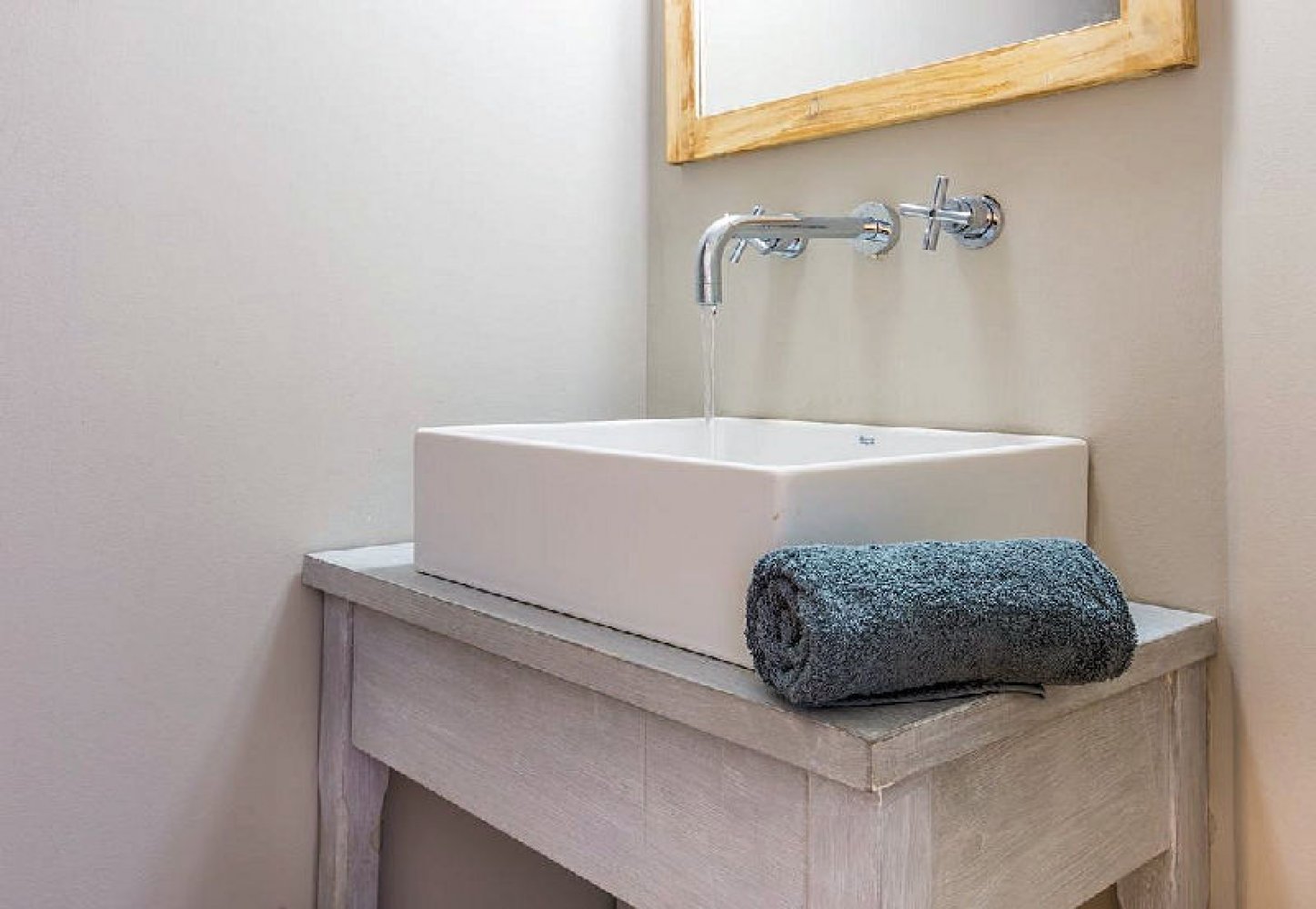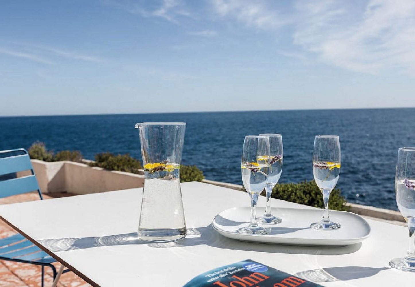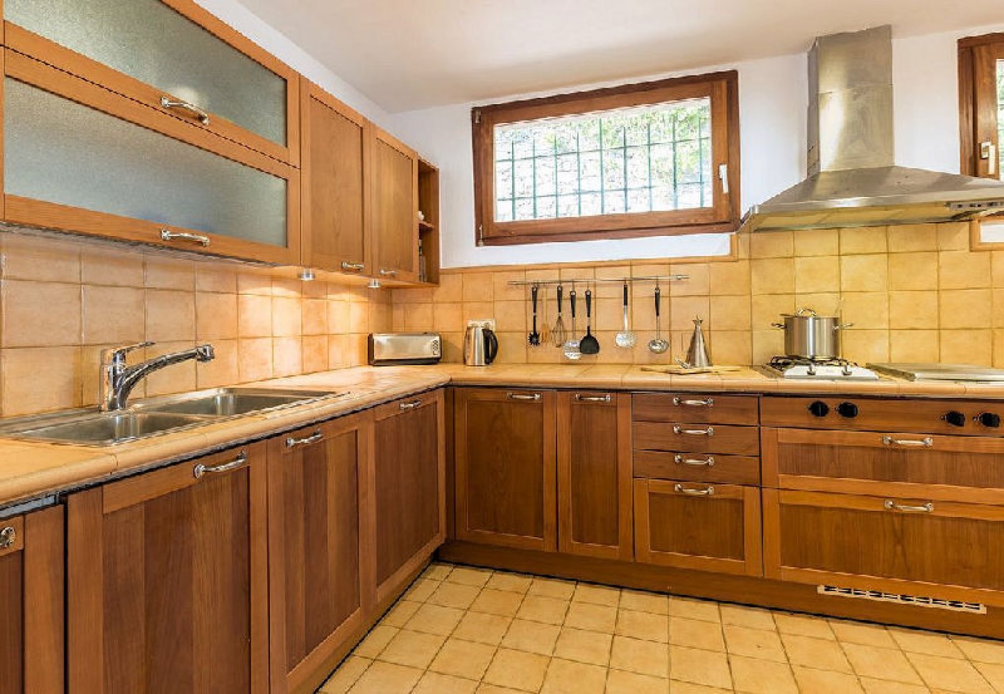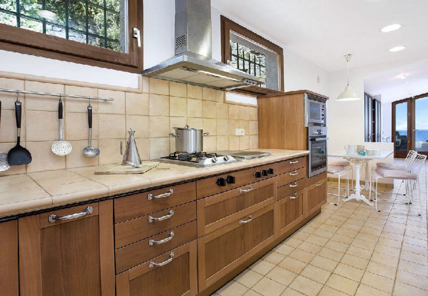 Die Architektur des Ferienhauses erstreckt sich über mehrere Etagen. Die Villa empfängt Sie mit einem lichtdurchfluteten Wohn- und Essbereich, ausgestattet mit Kamin und TV. Die moderne, voll ausgestattete Küche verfügt über eine Geschirrspülmaschine und eine Waschmaschine. Sie finden sechs Doppelschlafzimmer: zwei Suiten mit Doppelbetten, anliegenden modernen Badezimmern und einem Balkon mit herrlichem Blick auf das Meer; zwei Doppelzimmer; ein Schlafzimmer für zwei Personen mit einem Etagenbett; ein Schlafzimmer für zwei Personen mit einer Schlafcouch; sowie ein Einzelschlafzimmer.