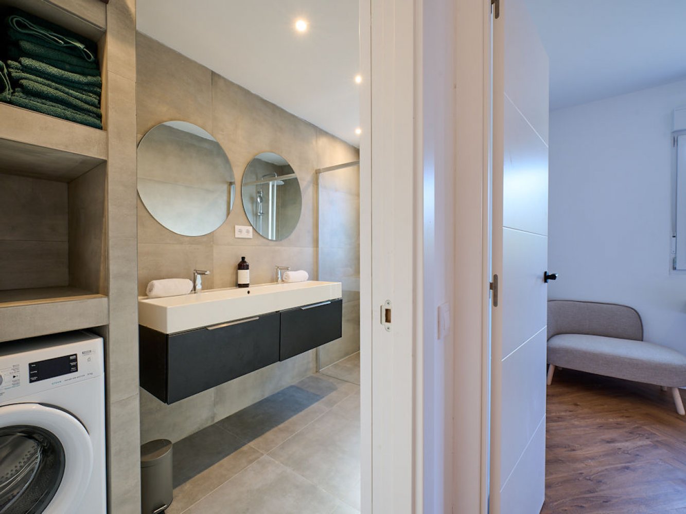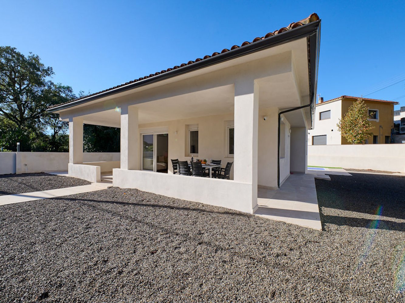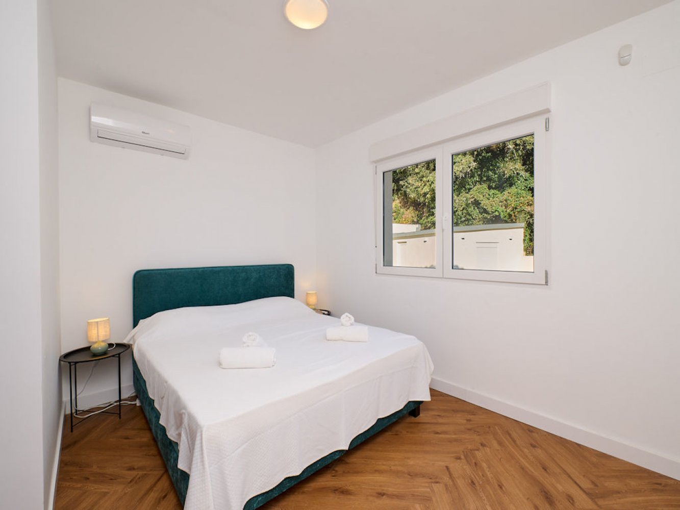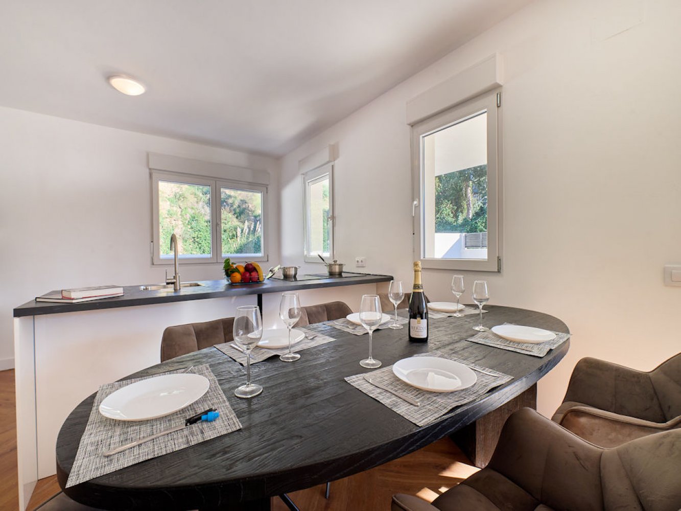 Das Ferienhaus bietet einen lichtdurchfluteten Wohn- und Essbereich mit TV, eine moderne, komplett ausgestattete Küche mit Geschirrspüler und Waschmaschine, drei Doppelzimmer, ein Badezimmer sowie ein Gäste-WC. Vom Wohn- und Essbereich gelangen Sie direkt auf eine schöne überdachte Terrasse mit Blick auf die mediterrane Umgebung und die große Poolterrasse. Auf dem Anwesen finden Sie verschiedene Chill-out-Bereiche und eine weitläufige Sonnenterrasse mit großem privatem Swimmingpool. Vor dem komplett abgeschlossenen Grundstück stehen Parkplätze zur Verfügung.