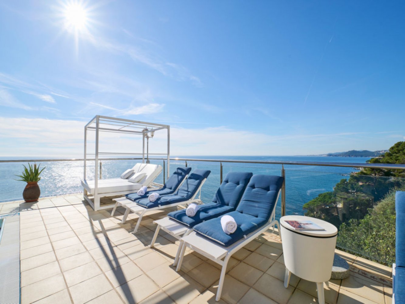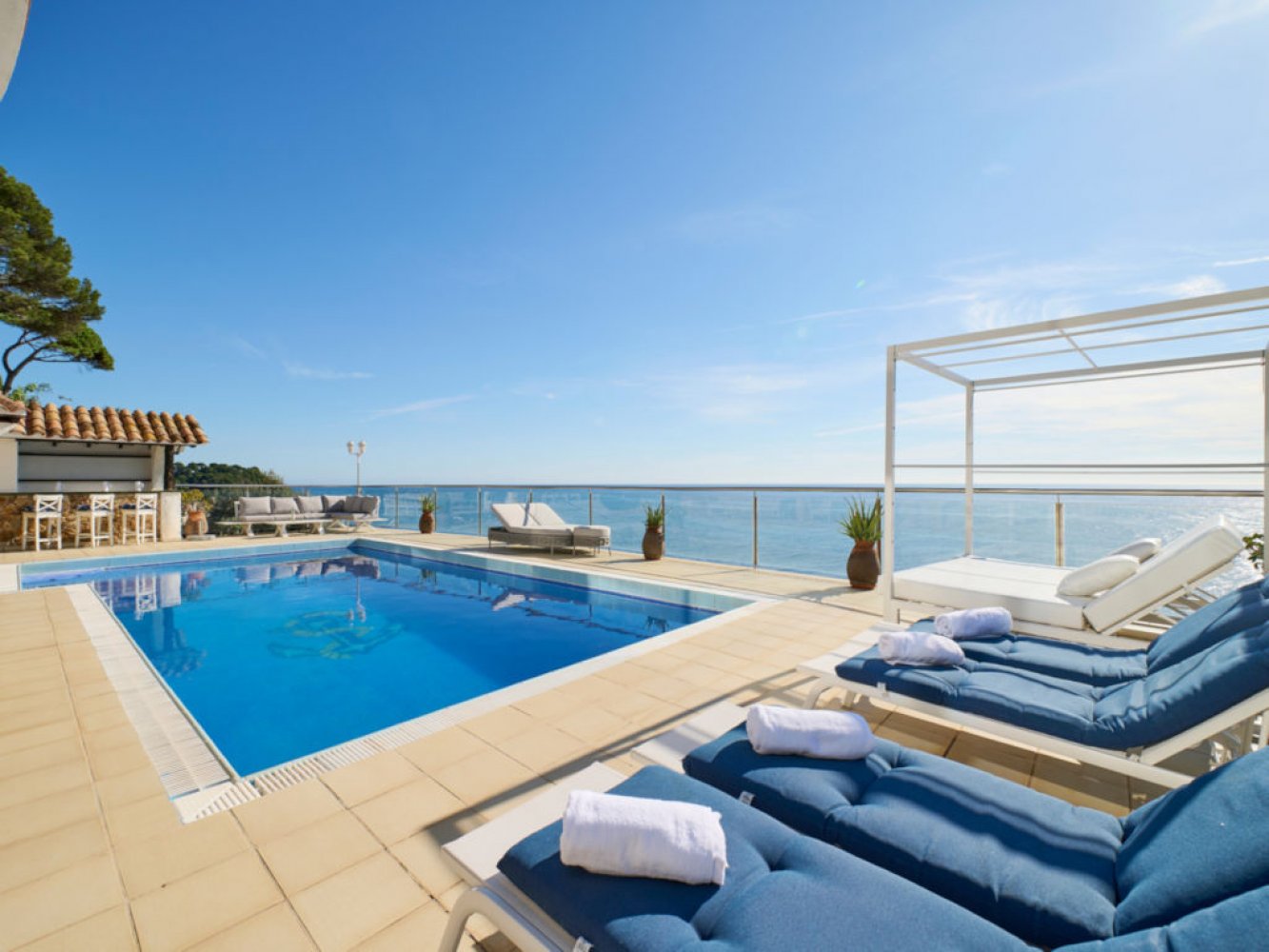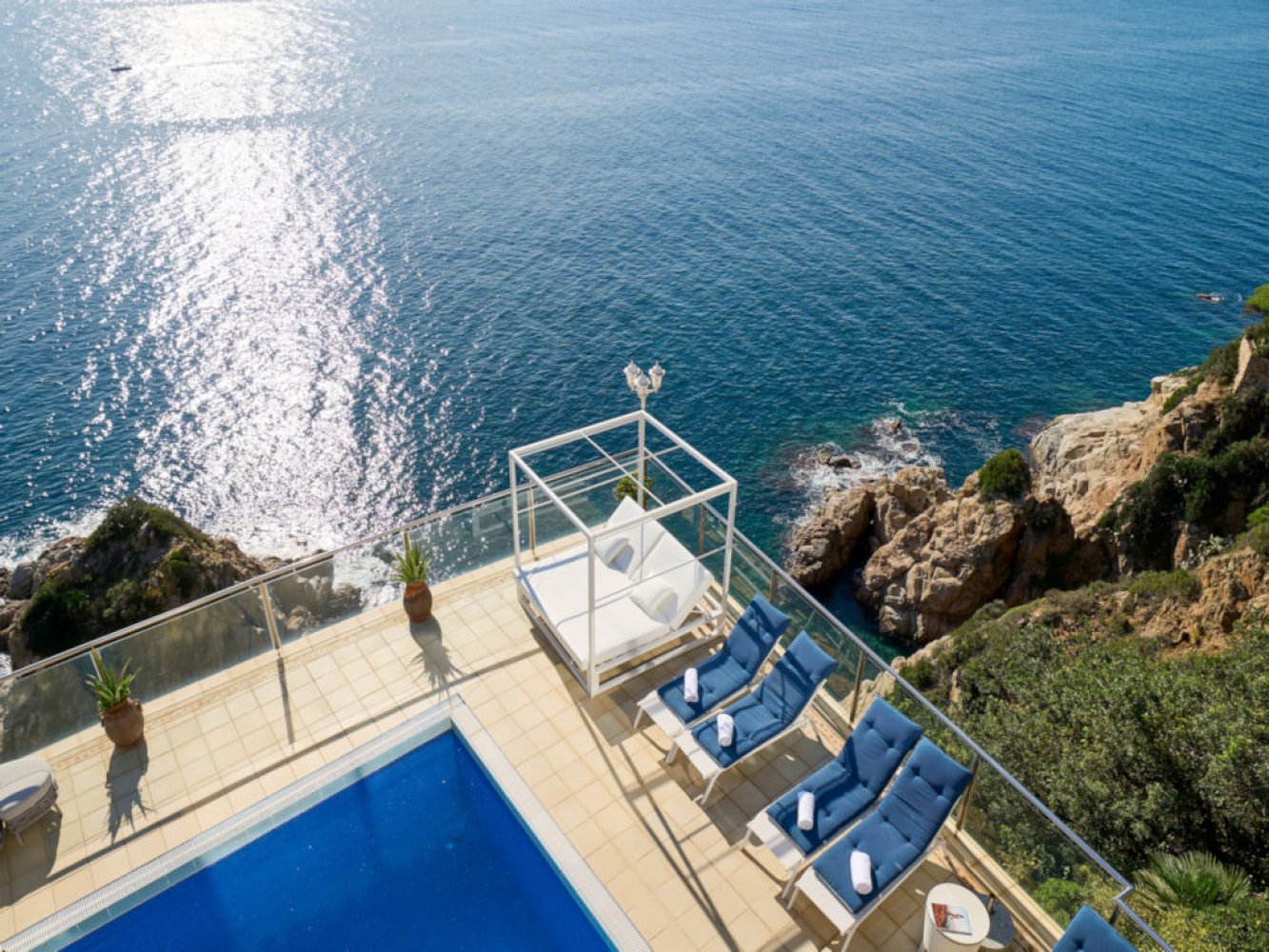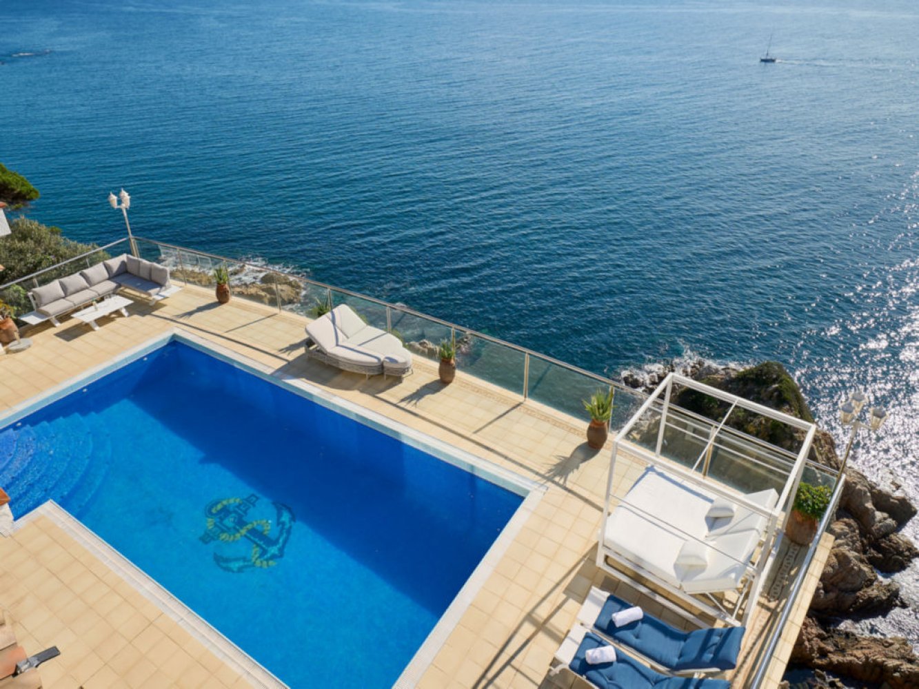Luxuriöse Ferienvilla mit privatem Pool, eingebettet zwischen den beliebten Ferienorten Lloret de Mar und Tossa de Mar, oberhalb der malerischen Badebucht Cala Canyelles an der Costa Brava. Erleben Sie den Luxus in dieser exklusiven Ferienvilla, die in erster Linie zum Meer liegt und einen atemberaubenden Panoramablick auf das Mittelmeer bietet. Über eine private Treppe gelangen Sie direkt zum Meer.