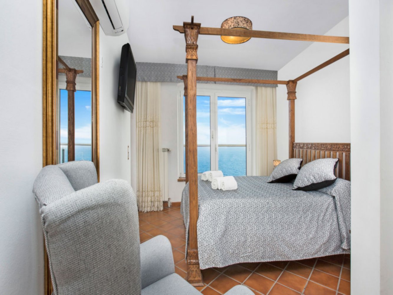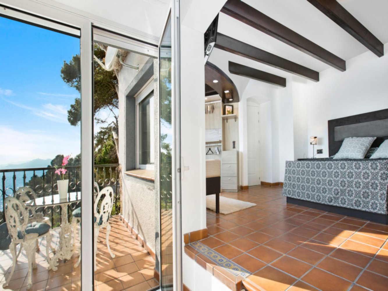 Insgesamt stehen Ihnen fünf Doppelschlafzimmer zur Verfügung, darunter zwei luxuriöse Suiten und ein Schlafzimmer mit einem eigenen Wohnbereich. Das Haus hat vier moderne Badezimmer, einen Whirlpool und eine Sauna für bis zu sechs Personen. Der wunderschöne Innenpool (9x4m) kann gegen Aufpreis beheizt werden. Das Wasser des Innenpools ist auf Raumtemperatur. Wenn in der Nebensaison warmes Wasser gewünscht wird, fällt ein Aufpreis von 150 €/Nacht (mindestens 5 Nächte) an. Eine Benachrichtigung 2 Tage im Voraus ist erforderlich. Alle Zimmer der Ferienvilla sind klimatisiert.