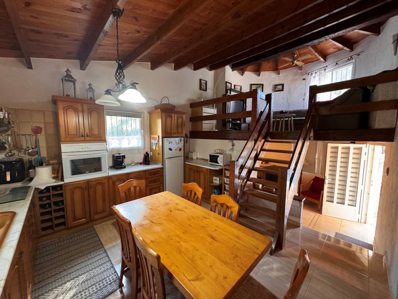 Die charmante Turmvilla verfügt über ein helles Wohn- und Esszimmer mit Kamin und Sat-TV, eine moderne, komplett ausgestattete Küche mit Geschirrspüler, zwei Doppelschlafzimmer und zwei moderne Badezimmer. Vom Wohn-Essbereich gelangen Sie auf eine schöne Terrasse mit gemauertem Grillbereich sowie auf die große Poolterrasse. Im Turm, über einen separaten Eingang zugänglich, befindet sich ein weiteres Doppelschlafzimmer mit modernem Badezimmer und Zugang zur Poolterrasse. Das abgeschlossene Grundstück bietet viel Privatsphäre.