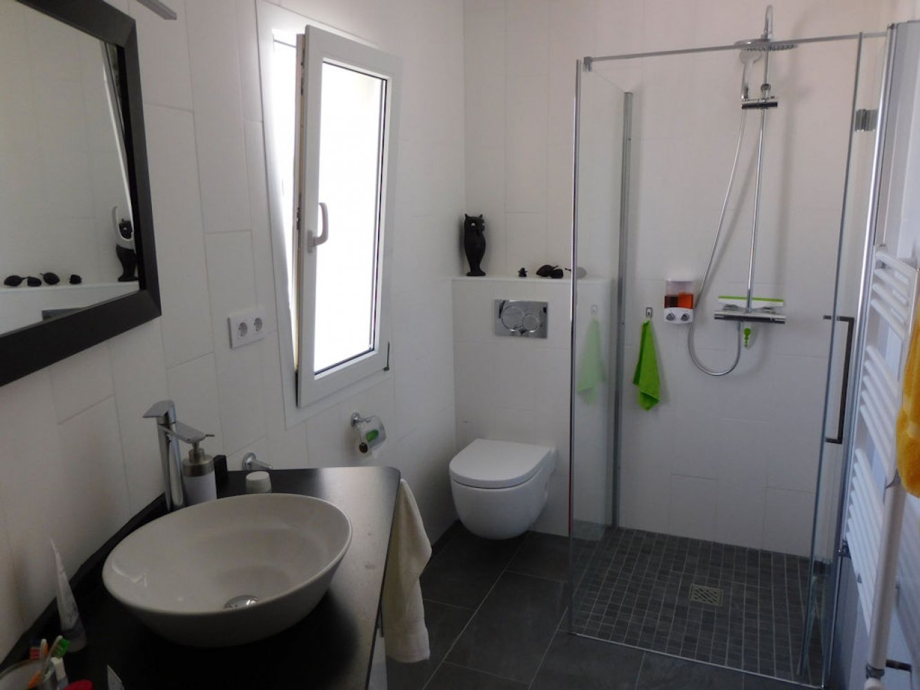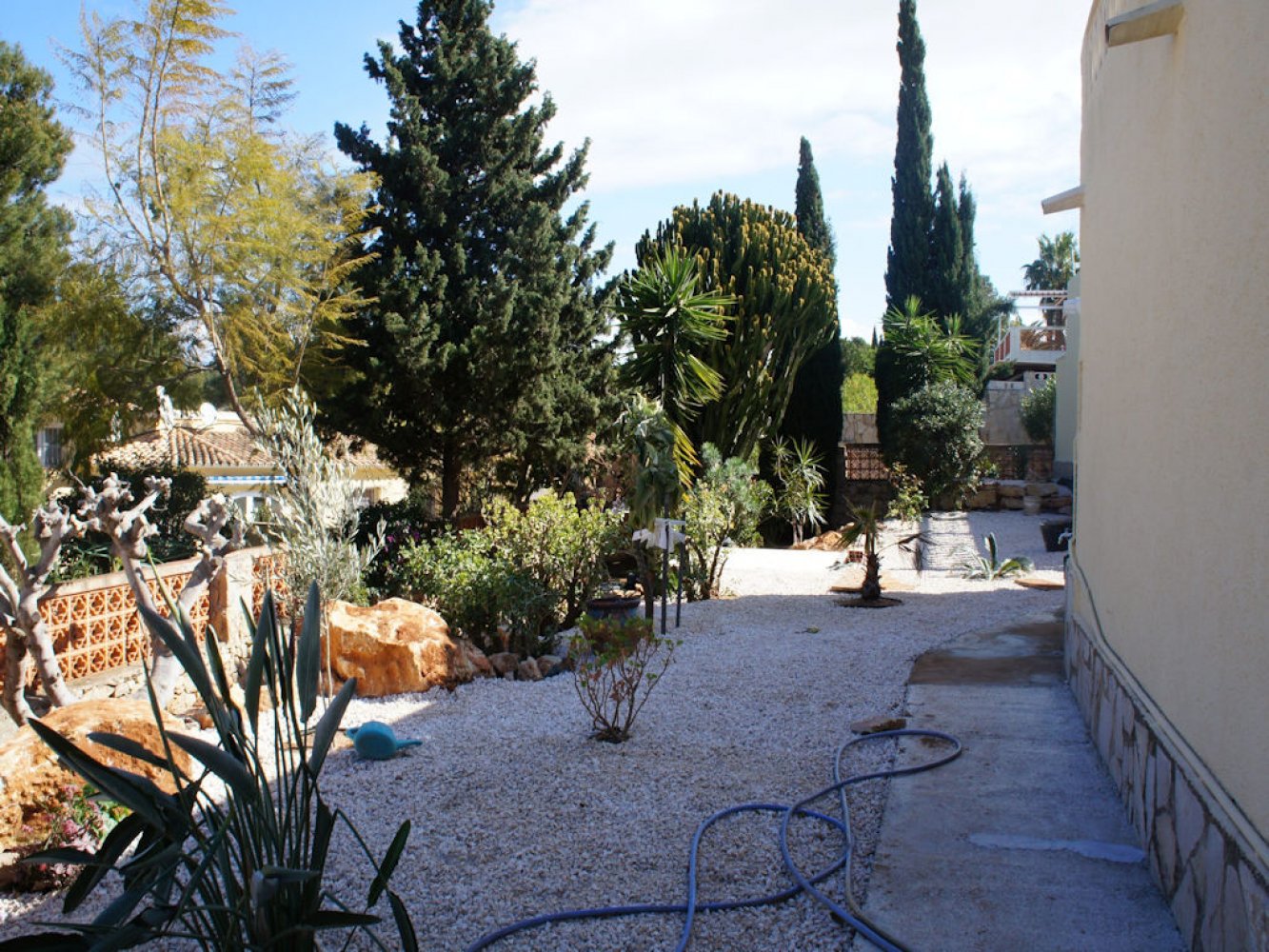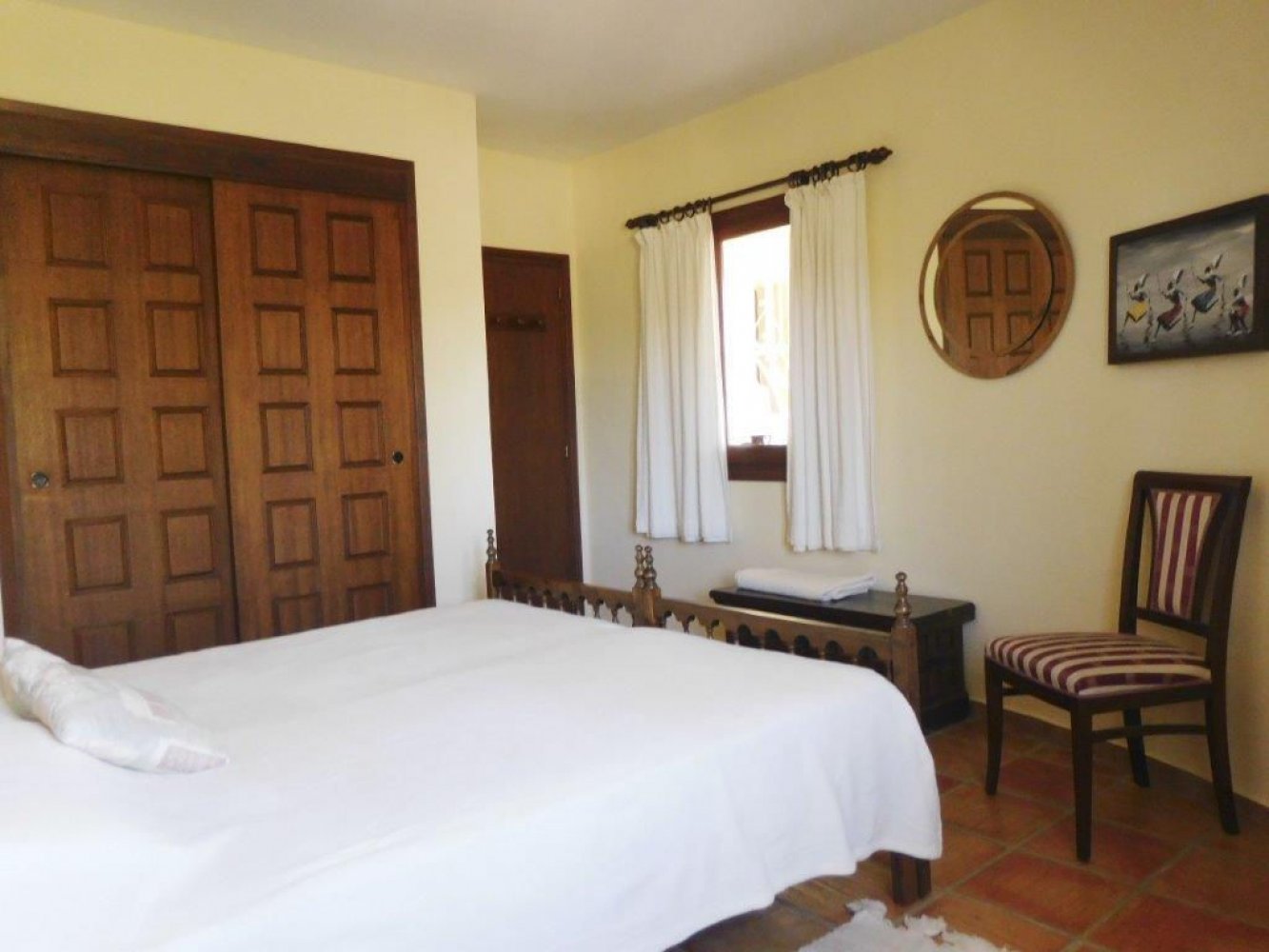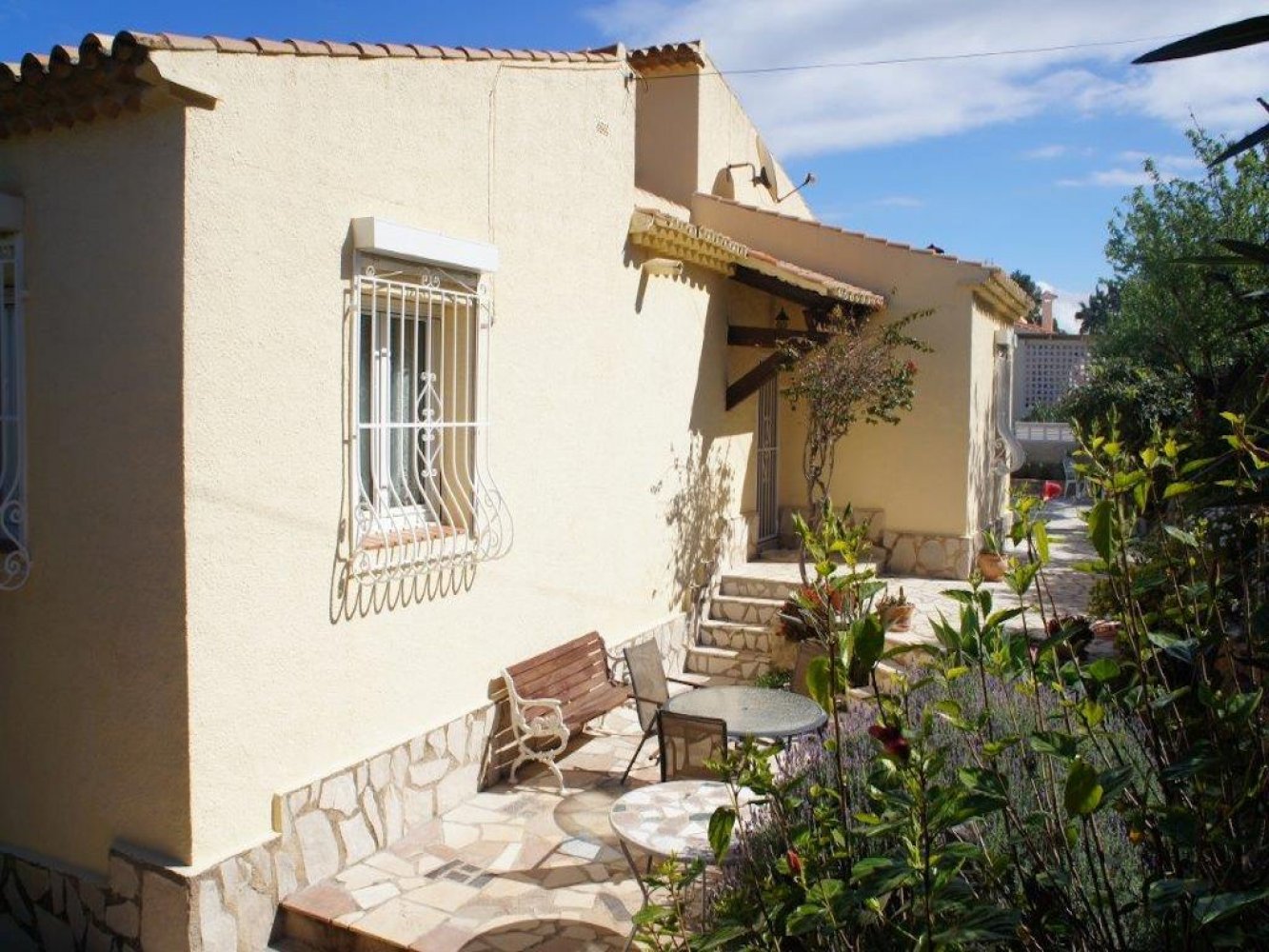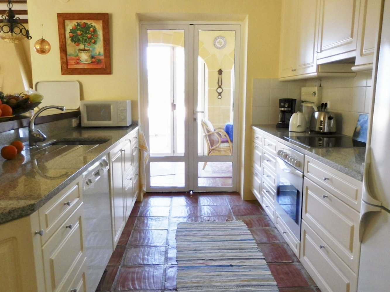 Die Villa bietet einen lichtdurchfluteten Wohn- und Essbereich mit Kamin und Sat-TV sowie eine moderne, komplett ausgestattete Küche mit Geschirrspülmaschine, drei Doppelschlafzimmer und zwei Badezimmer. Vom Wohn- und Essbereich des Ferienhauses gelangen Sie auf eine schöne überdachte und verglaste Terrasse sowie in den Poolbereich. Das abgeschlossene Grundstück des Anwesens bietet viel Privatsphäre und umfasst mehrere schöne Terrassen, eine großzügige Sonnenterrasse mit Außendusche sowie einen großen, privaten Swimmingpool. Eine Garage mit Waschmaschine und Parkplätze sind vorhanden.