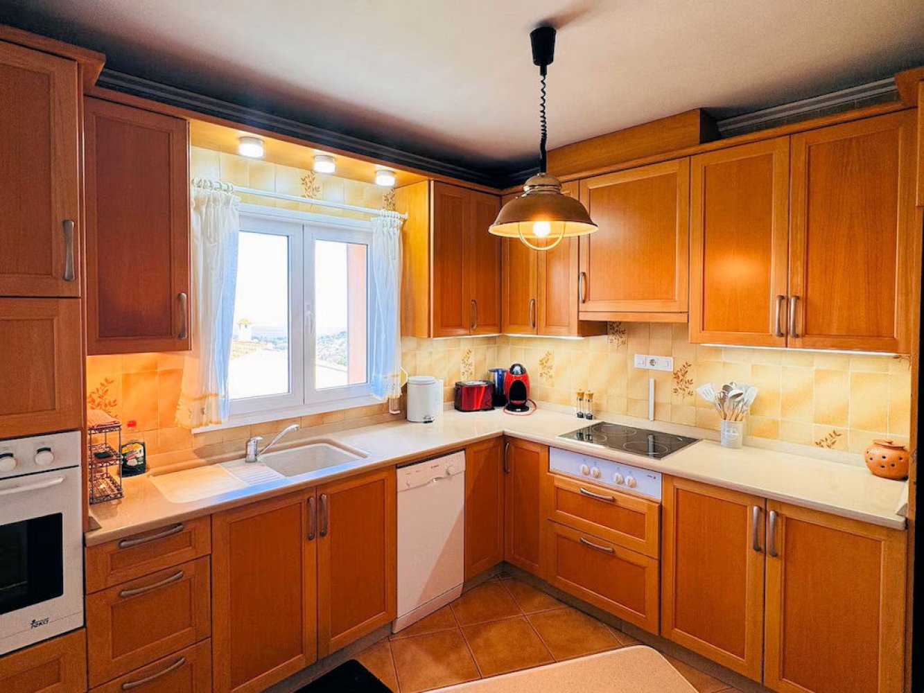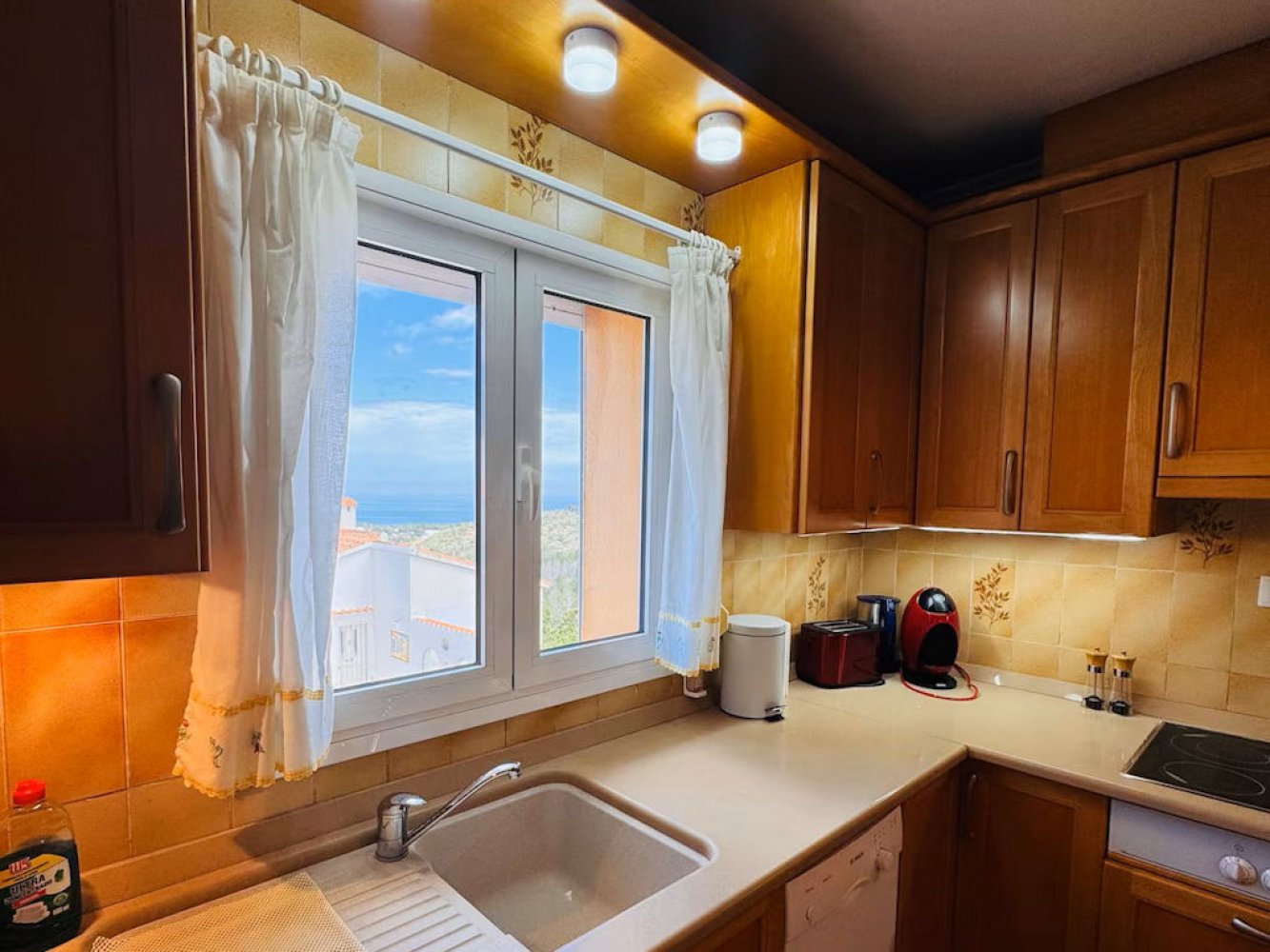 Die Ferienvilla bietet einen hellen Wohn- und Essbereich mit Kamin und TV sowie eine moderne, voll ausgestattete Küche mit Geschirrspüler, zwei Doppelschlafzimmer und zwei moderne Badezimmer – eines davon ist mit einer Waschmaschine. Vom Wohn- und Essbereich aus gelangen Sie auf die großzügige Poolterrasse mit herrlichem Meerblick. Auf dem Anwesen befinden sich ein gemütlicher Chill-out-Bereich sowie eine Außenküche mit gemauertem Grill. Das abgeschlossene Grundstück bietet Ihnen die weitläufige Sonnenterrasse mit einer Außendusche und dem großem privaten Swimmingpool. Ein privater Parkplatz für Ihr Fahrzeug ist ebenfalls vorhanden.