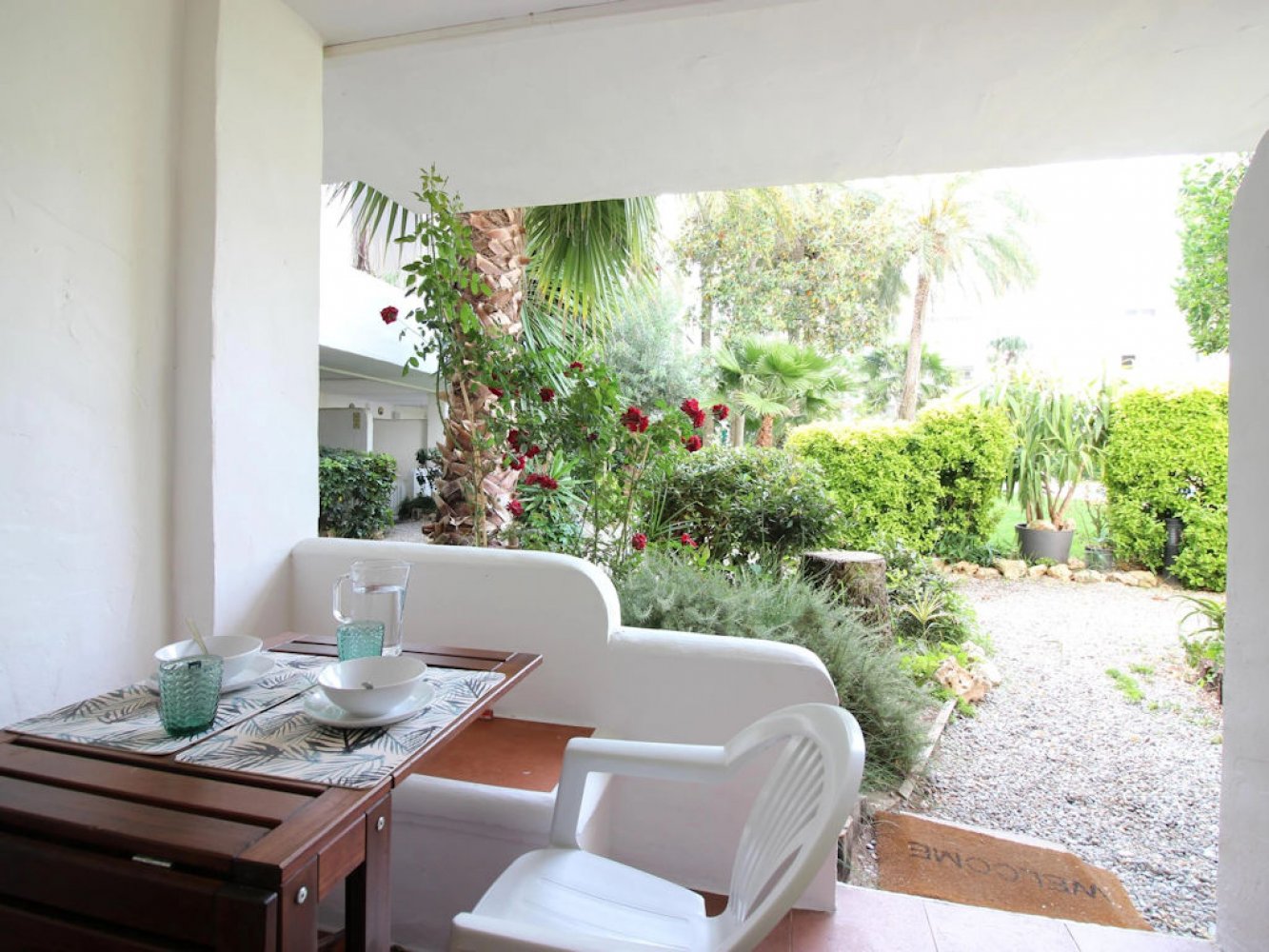 Located on the ground floor, the apartment features a bright living and dining area with a sofa bed and satellite TV, a fully equipped modern kitchen with a washing machine, one double bedroom, and a modern bathroom. From the living area, you can access a lovely terrace with direct access to the pool. A bike parking space is available in the communal area, and car parking is located right in front of the complex.
