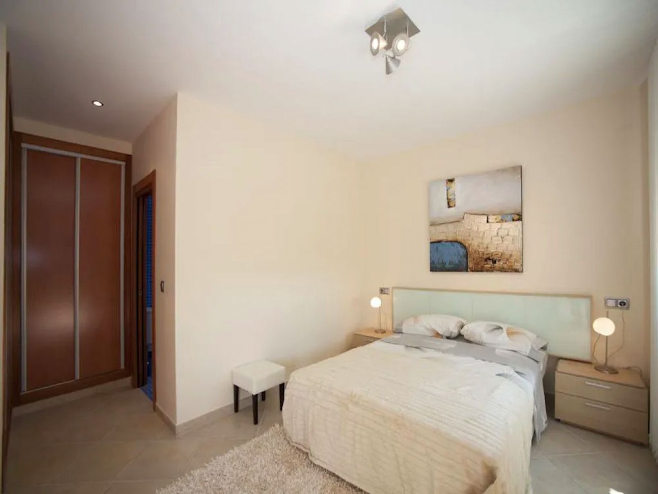 The holiday home extends over two floors and features a light-flooded living and dining area equipped with satellite TV, a fully equipped kitchen with a dishwasher and a washing machine, four double bedrooms, three of which are air-conditioned, two modern bathrooms, and a guest WC. From the living and dining area, you have access to a spacious covered terrace with an outdoor kitchen and to the expansive pool terrace. The enclosed Mediterranean property includes a large sun terrace with an outdoor shower and the private, secluded pool. The parking space on the property is covered.