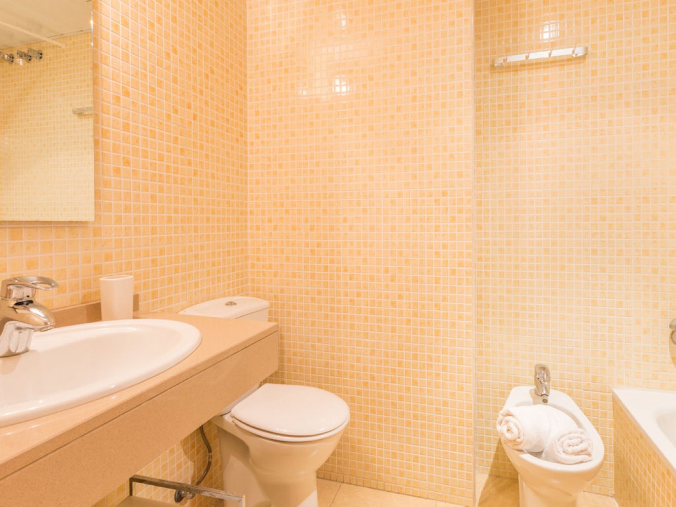 Modern holiday apartment, just 400 meters from Fenals sandy beach in Lloret de Mar on the Costa Brava, Spain. The apartment is part of a well-maintained Mediterranean complex with a spacious lawn, a large swimming pool with outdoor showers, and a separate children’s pool.