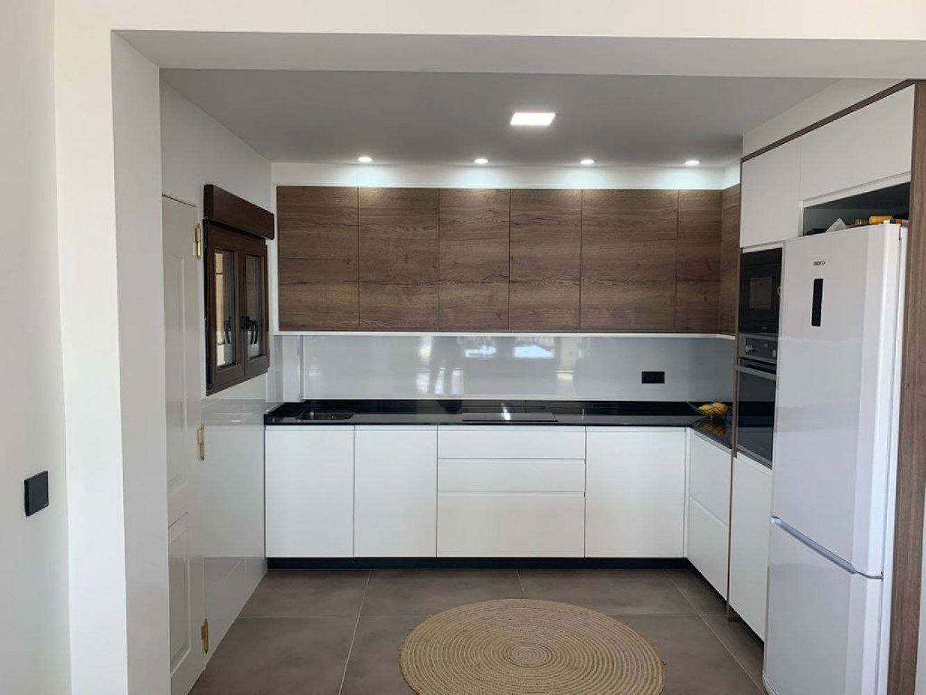 The finca is spread over two floors and features a bright living and dining area with TV, a fully equipped modern kitchen with dishwasher, a separate laundry room with washing machine, four double bedrooms, and two contemporary bathrooms. From the living and dining area, you have direct access to a spacious covered terrace with an outdoor kitchen and to the generous pool terrace.