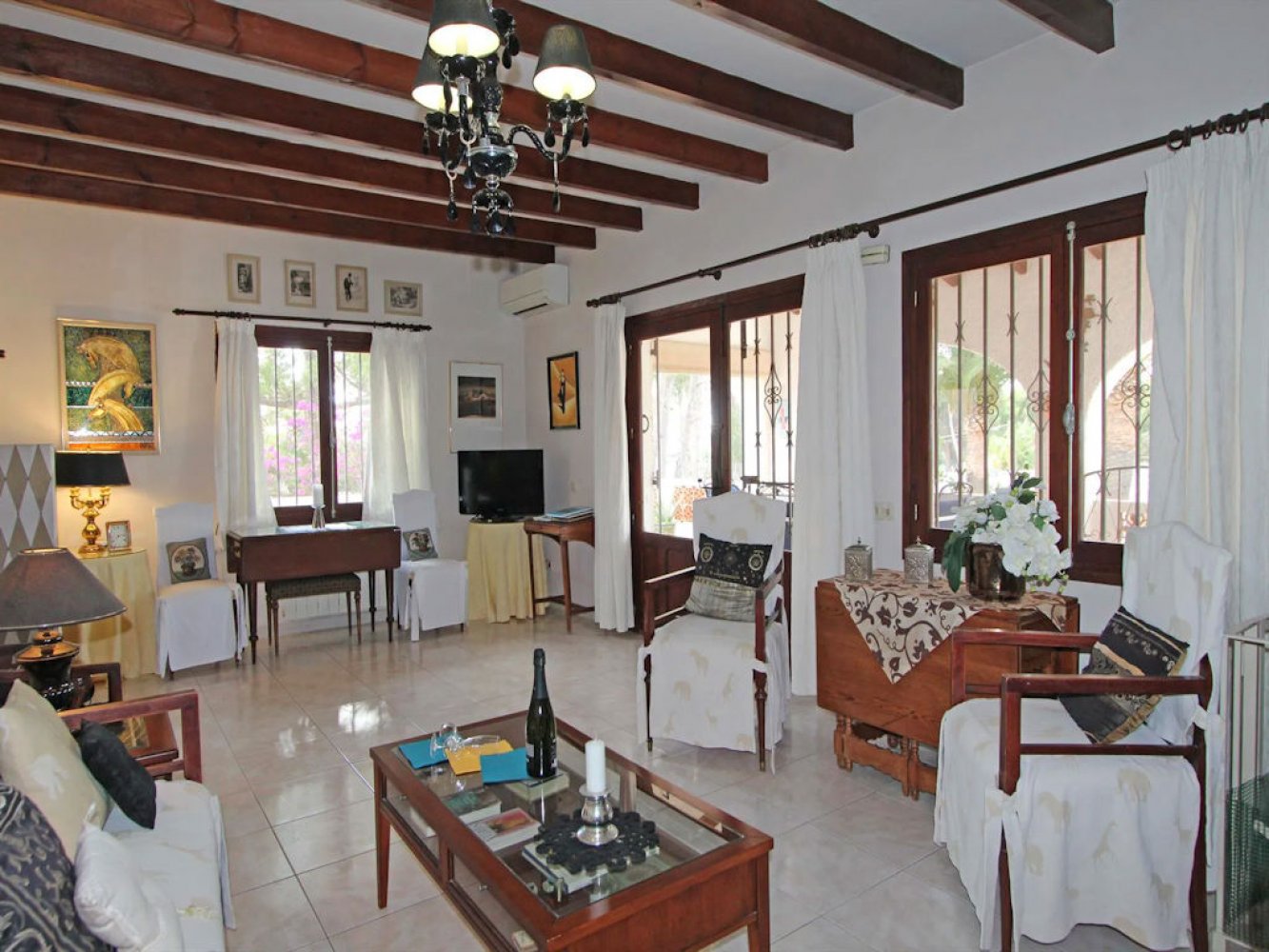 La villa bonita se desarrolla en dos plantas y dispone de un salón-comedor luminoso con chimenea y televisión por satélite, una cocina moderna totalmente equipada con lavavajillas, una despensa con lavadora, cuatro dormitorios dobles y tres baños modernos. Desde el salón-comedor se accede a una bonita terraza cubierta con impresionantes vistas panorámicas del paisaje circundante. La propiedad completamente cerrada ofrece una cocina exterior con barbacoa de obra, varias terrazas amplias y una gran terraza soleada con ducha exterior que rodea la amplia piscina privada. También hay aparcamiento para sus vehículos.