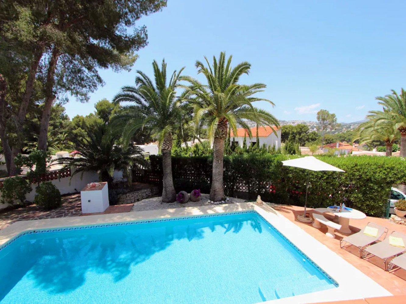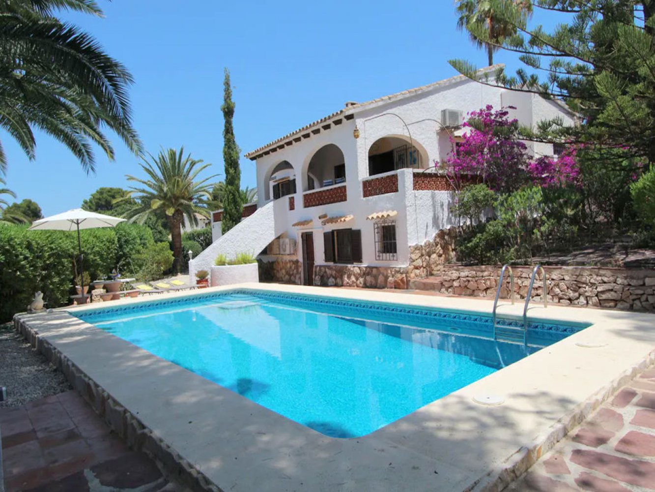 Villa mediterránea de vacaciones con piscina privada en Moraira, Costa Blanca. La propiedad se encuentra a solo 500 m de la playa de arena Playa de l’Ampolla del municipio turístico.