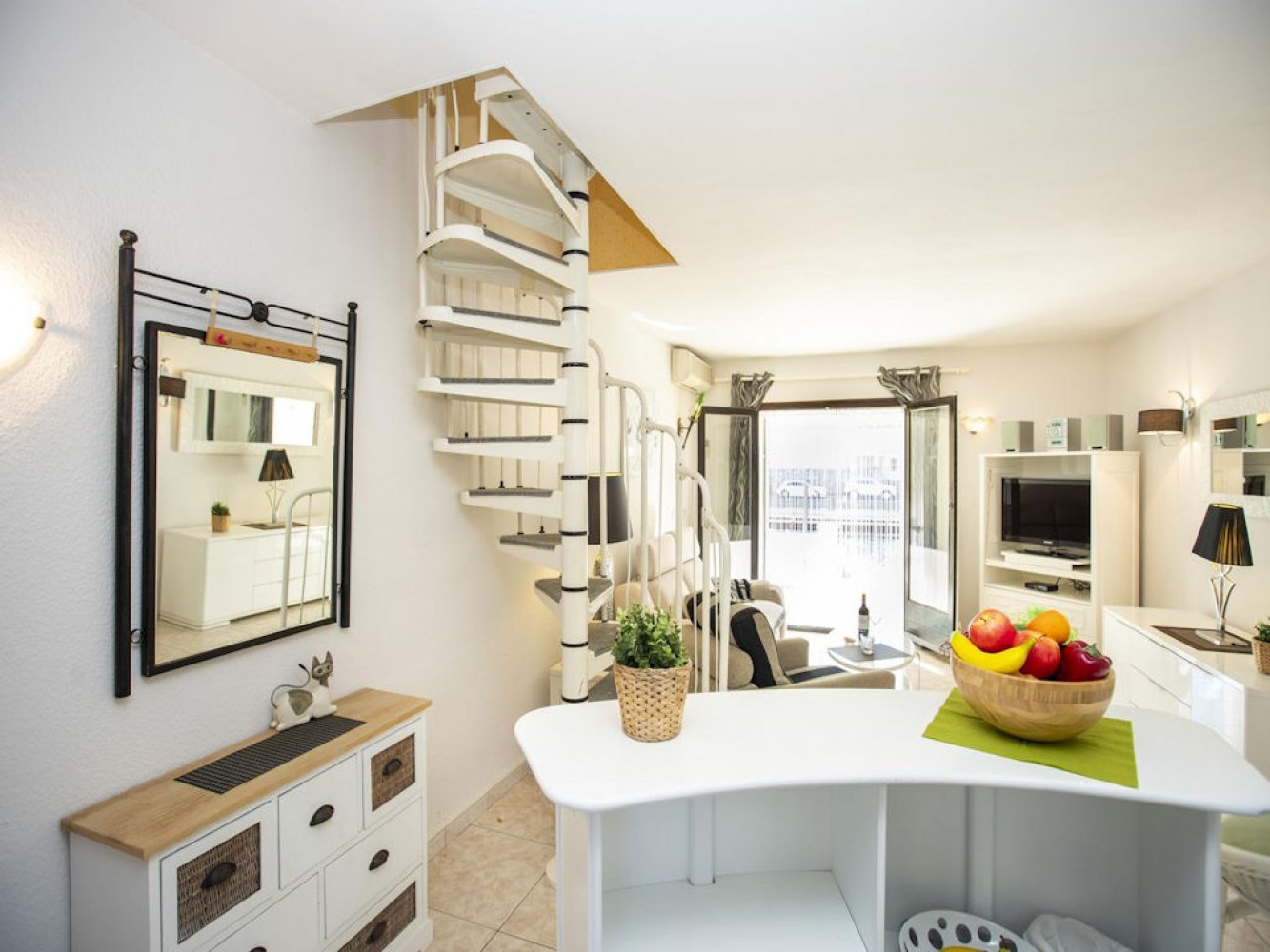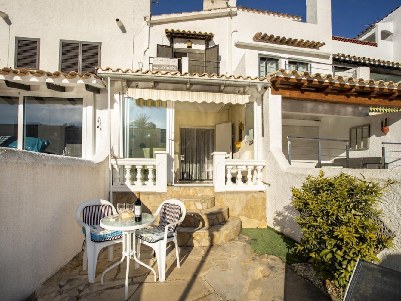 La casa se distribuye en dos plantas. En la planta baja encontrará un luminoso salón-comedor con TV satélite, una cocina moderna totalmente equipada con lavadora y un aseo para invitados. Desde aquí se accede a la hermosa terraza cubierta y acristalada, que ofrece impresionantes vistas al puerto. En la planta superior hay dos dormitorios dobles y un baño moderno. La casa dispone de un muelle privado de 4 metros. Se incluye plaza de aparcamiento para un vehículo.