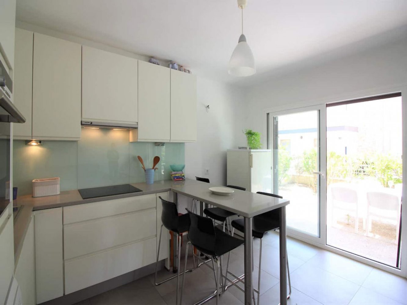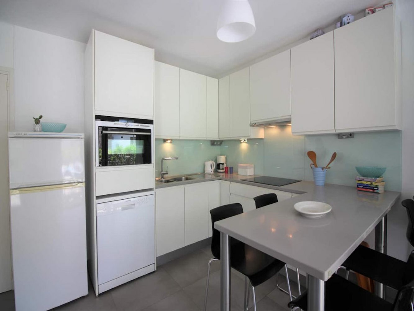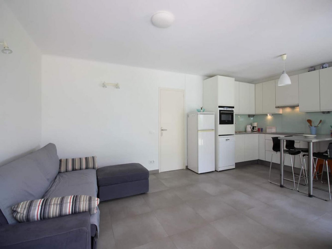 L’appartement, situé au rez-de-chaussée, dispose d’un séjour lumineux avec coin repas et télévision, d’une cuisine moderne entièrement équipée avec lave-vaisselle et lave-linge, d’une chambre double, d’une chambre avec quatre lits ainsi que d’une salle de bains contemporaine. Depuis le séjour, vous accédez à une belle terrasse offrant une vue sur la mer. Des possibilités de stationnement se trouvent autour de l’immeuble.