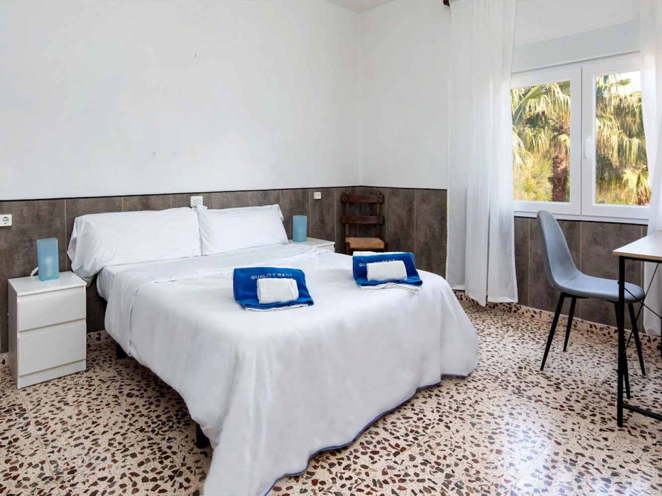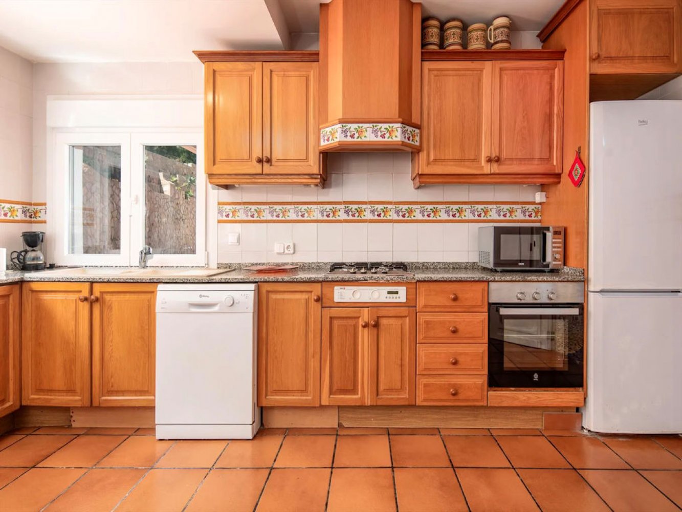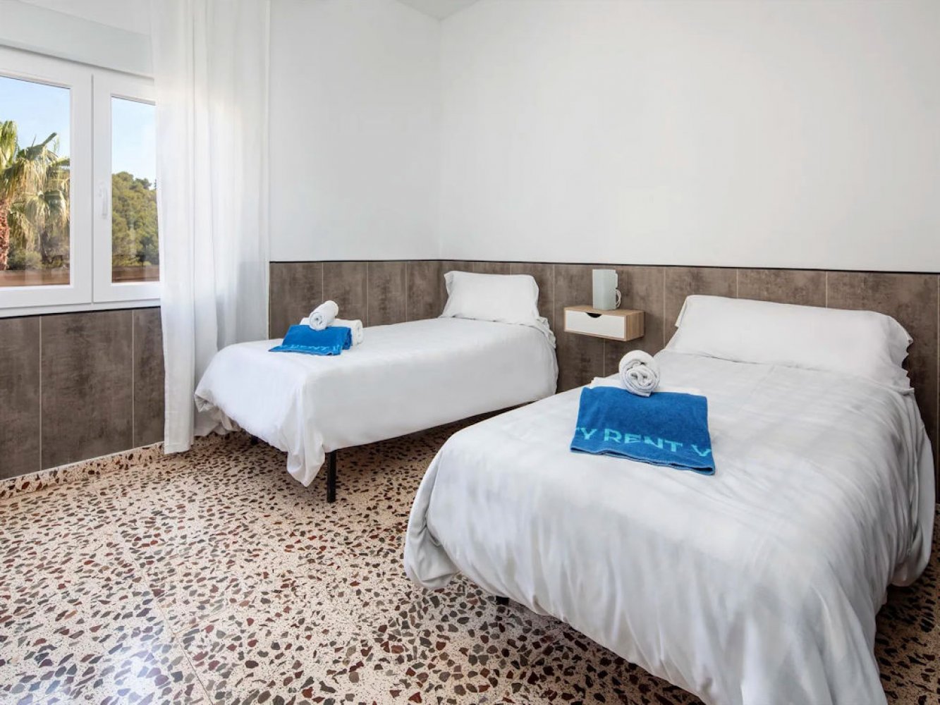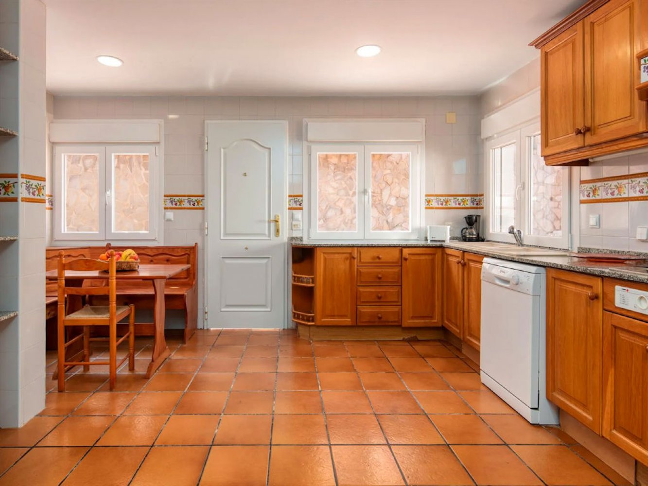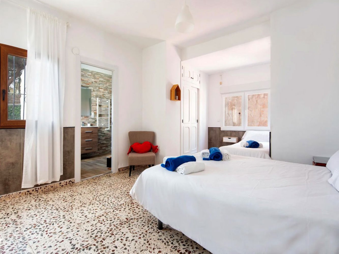 La maison comprend un salon lumineux avec cheminée et TV satellite, un espace détente supplémentaire, une cuisine moderne entièrement équipée avec un cellier attenant et lave-linge, quatre chambres doubles et une autre chambre avec quatre lits, ainsi que quatre salles de bain modernes. L’extérieur est un point fort : plusieurs espaces chill-out, un barbecue en dur et une grande terrasse ensoleillée avec douche extérieure et la grande piscine privée.