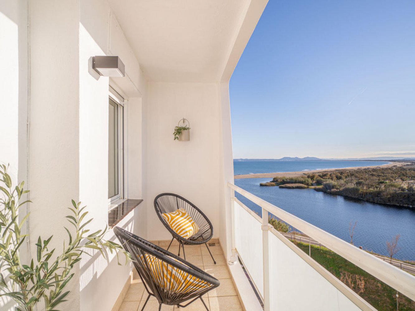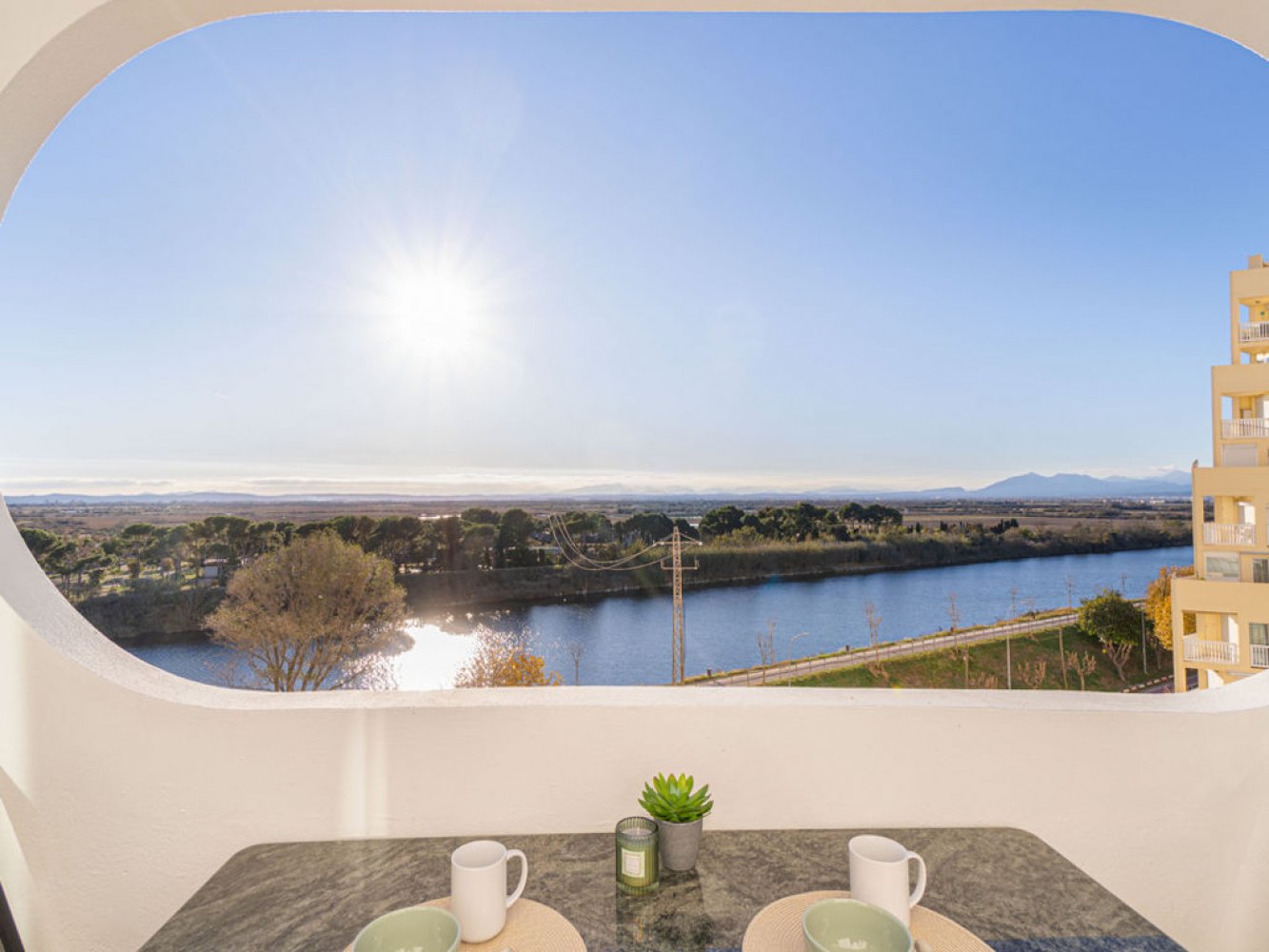 Appartement de vacances moderne et exclusif, à seulement 20 mètres de la plage d’Empuriabrava, offrant une vue panoramique exceptionnelle sur la mer et le fleuve Muga jusqu’au parc naturel.