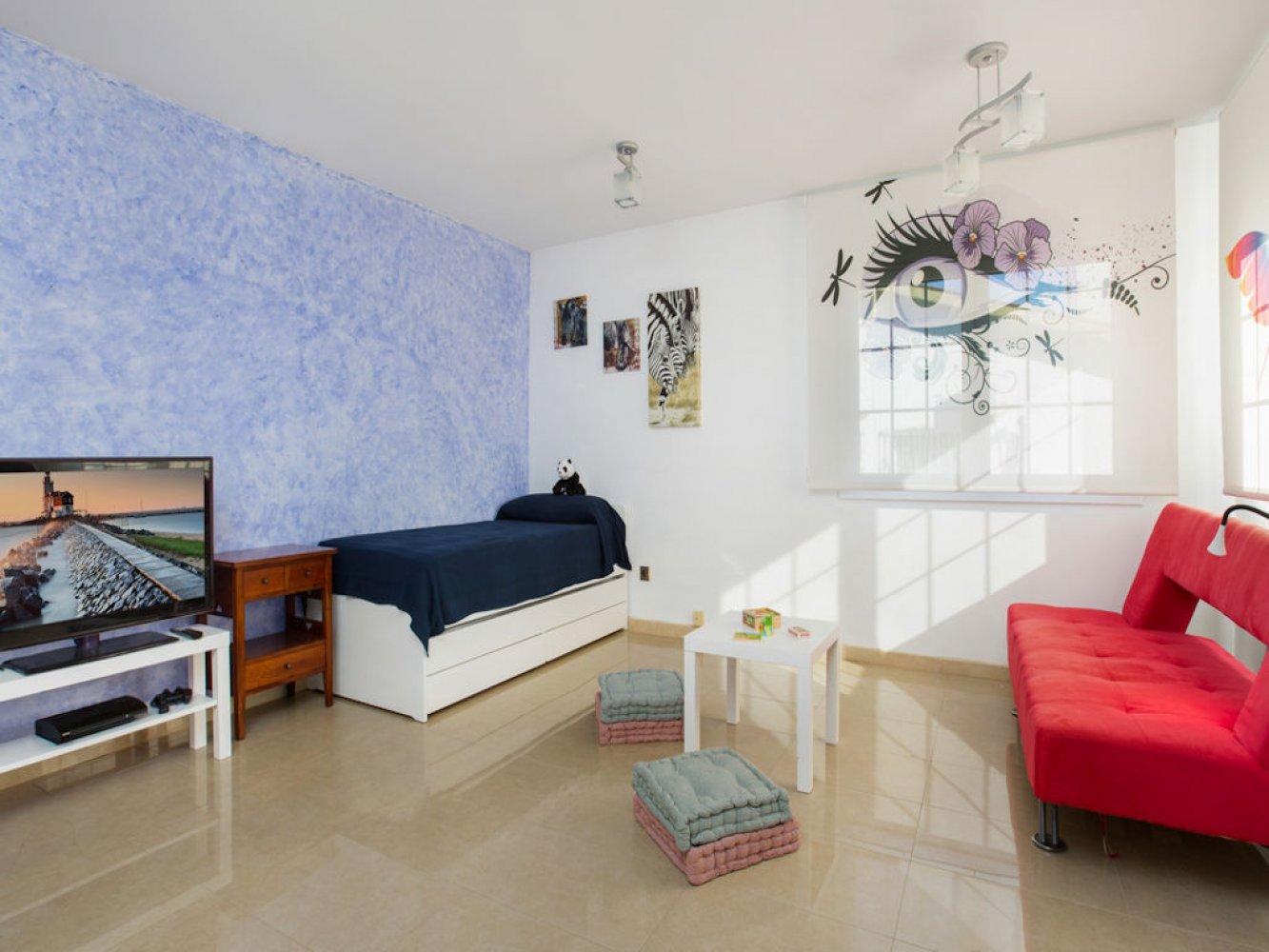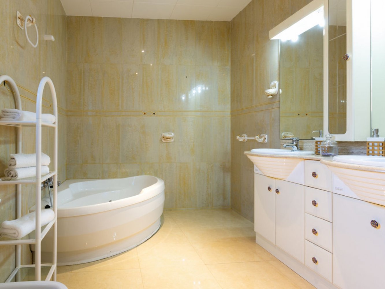 La villa s’étend sur deux étages. Au rez-de-chaussée, vous trouverez un salon-salle à manger lumineux avec cheminée et télévision, une cuisine entièrement équipée avec lave-vaisselle et lave-linge, deux chambres doubles et une salle de bain moderne. Depuis le salon-salle à manger, vous pouvez accéder directement à une belle grande terrasse offrant une vue panoramique imprenable sur les montagnes.