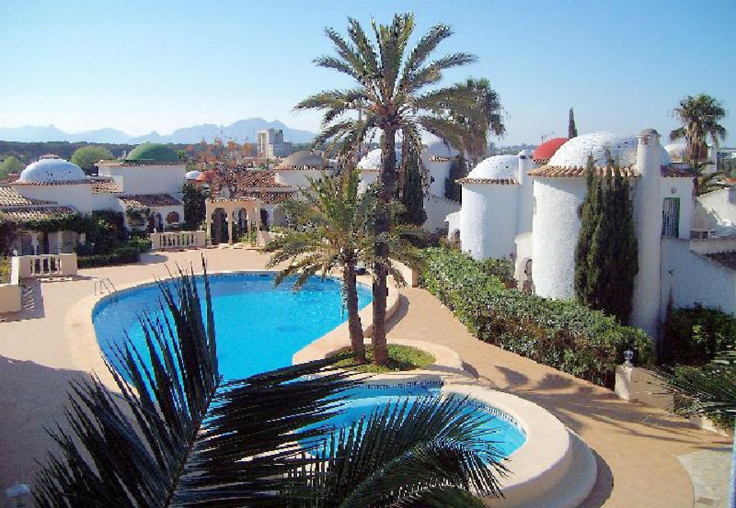 Le bungalow méditerranéen à Dénia, sur la Costa Blanca, est niché au cœur d’une magnifique résidence de vacances construite dans un style architectural mauresque. Le vaste espace piscine de la résidence comprend une grande piscine ainsi qu’un bassin pour enfants.
