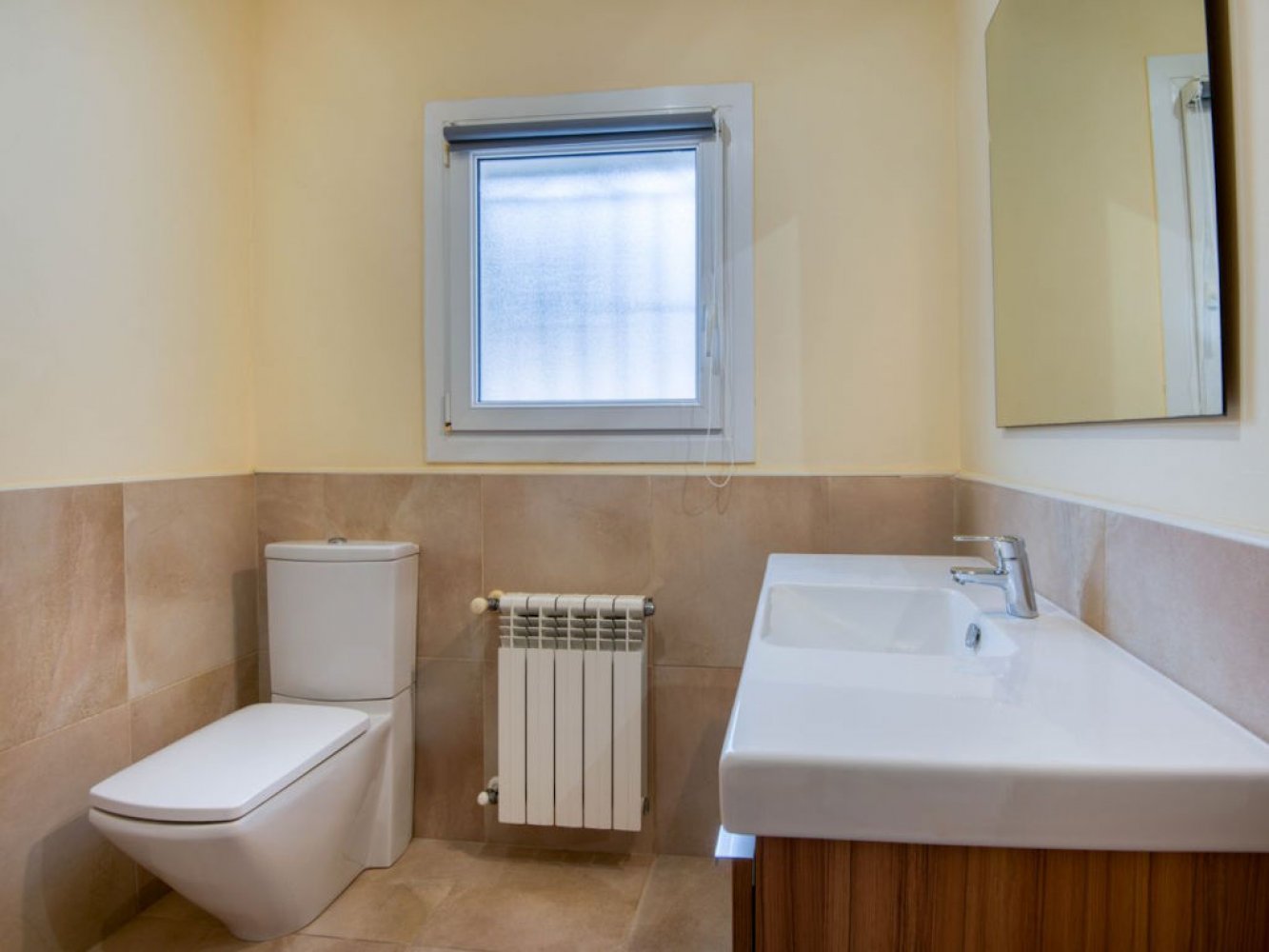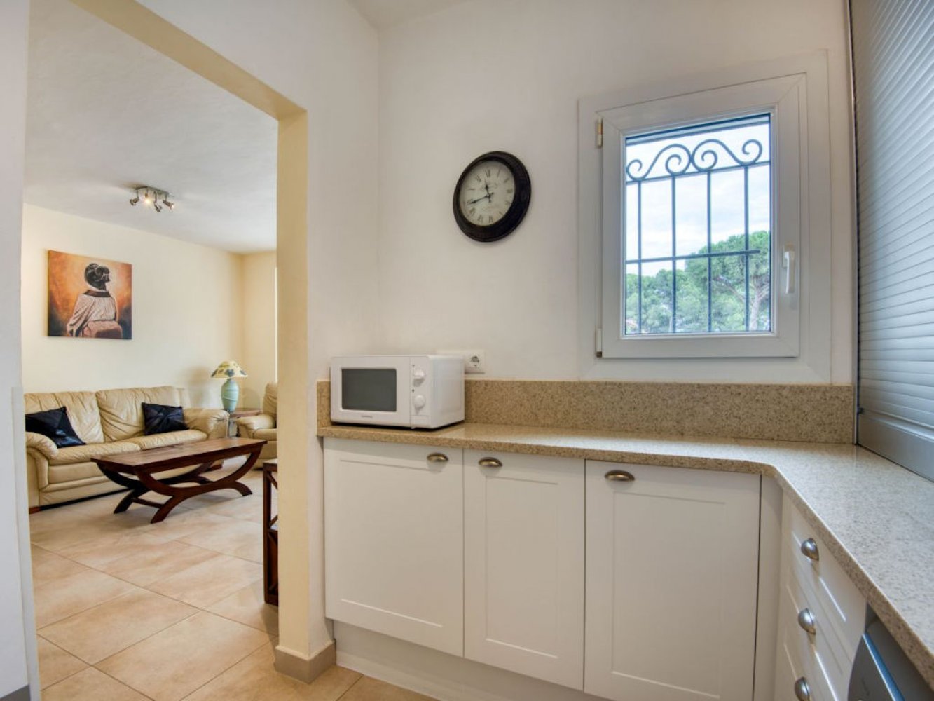 La villa comprend un séjour lumineux avec coin repas, cheminée et TV, une cuisine moderne entièrement équipée avec lave-vaisselle et lave-linge, trois chambres doubles et deux salles de bain modernes. Depuis le séjour, vous accédez à une agréable terrasse couverte ainsi qu’à la grande terrasse avec piscine. La propriété entièrement clôturée offre une généreuse terrasse ensoleillée avec piscine privée. Un parking est disponible sur place.
