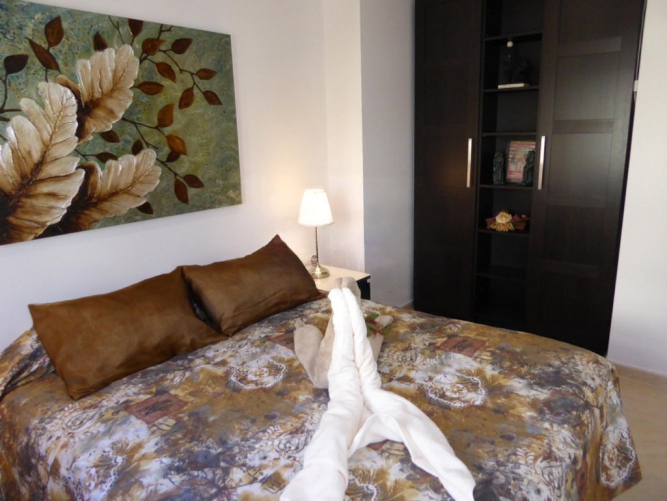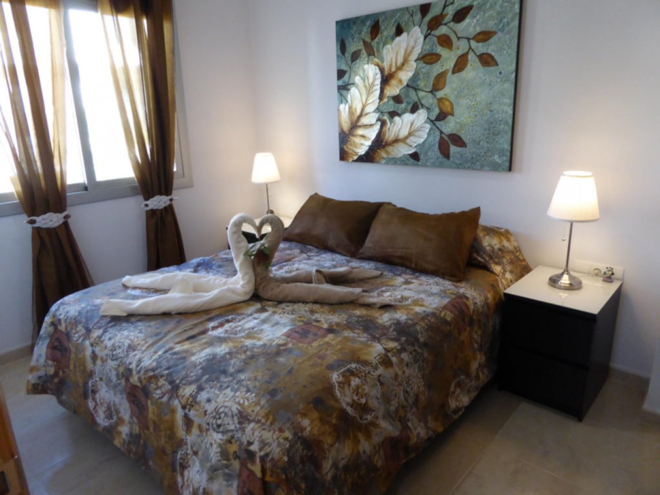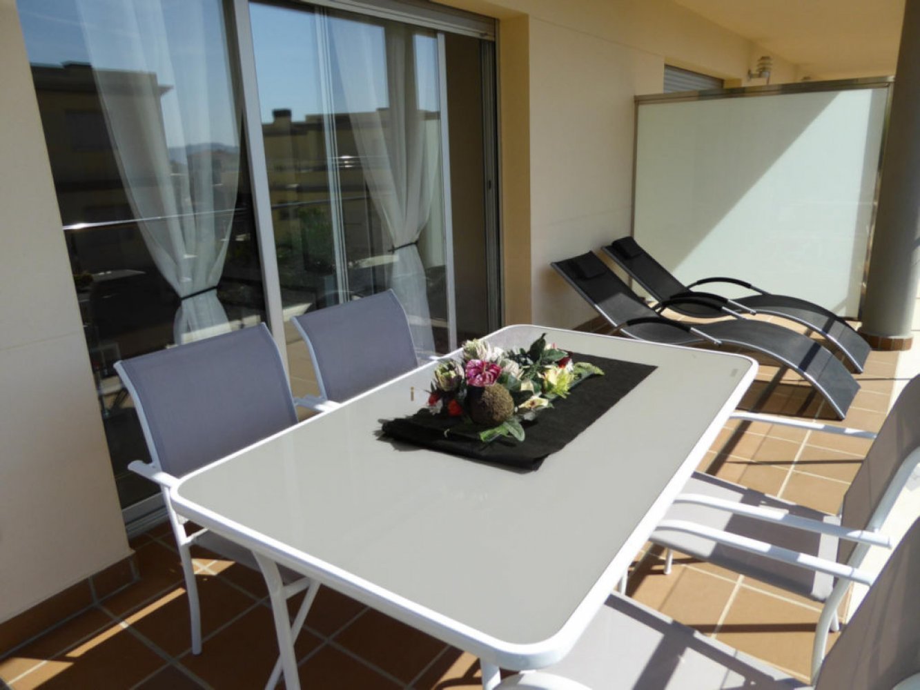 L’appartement de vacances se situe au 1er étage et dispose d’un salon-salle à manger lumineux avec canapé-lit et télévision, d’une cuisine moderne entièrement équipée avec lave-vaisselle et lave-linge, de deux chambres doubles ainsi que d’une salle de bain moderne. Depuis le séjour, vous accédez à un agréable balcon offrant une vue panoramique sur la résidence de style méditerranéen et la mer.